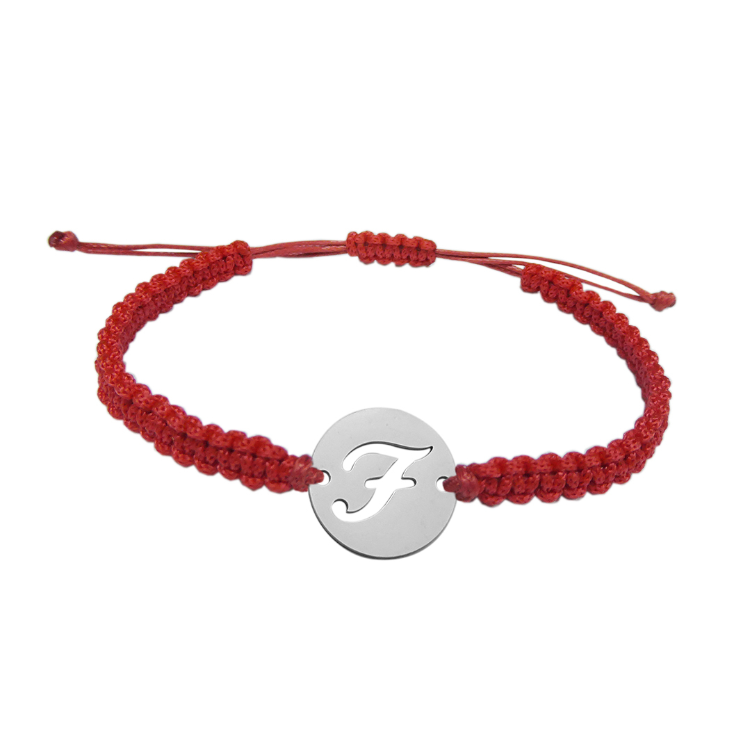 Martisor Bratara snur rosu impletit manual personalizata banut decupat argint Litera F 9477140 Dras. Compozitie: Argint 740. Cutie de bijuterii cadou.