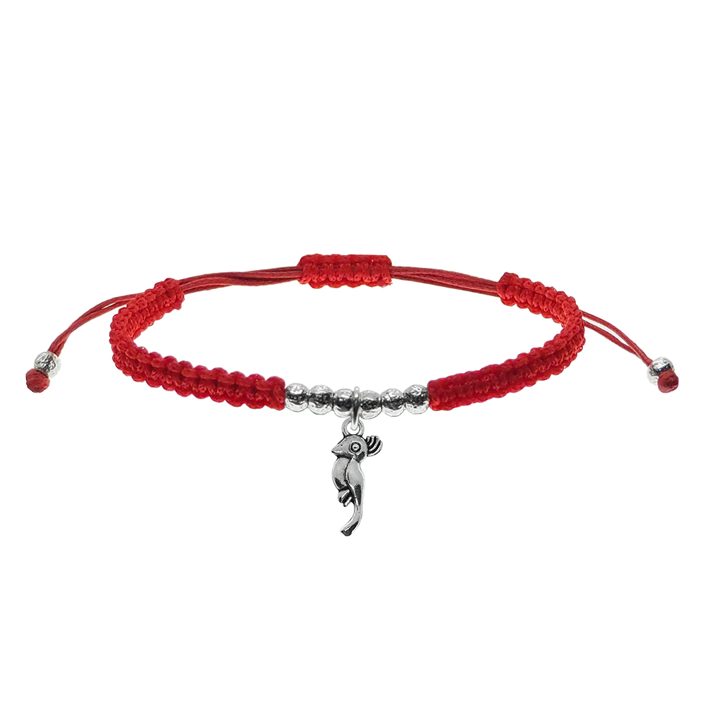 Martisor Bratara snur rosu impletita manual personalizata Papagal argint 9717390 Dras. Compozitie: Argint 740. Cutie de bijuterii cadou.