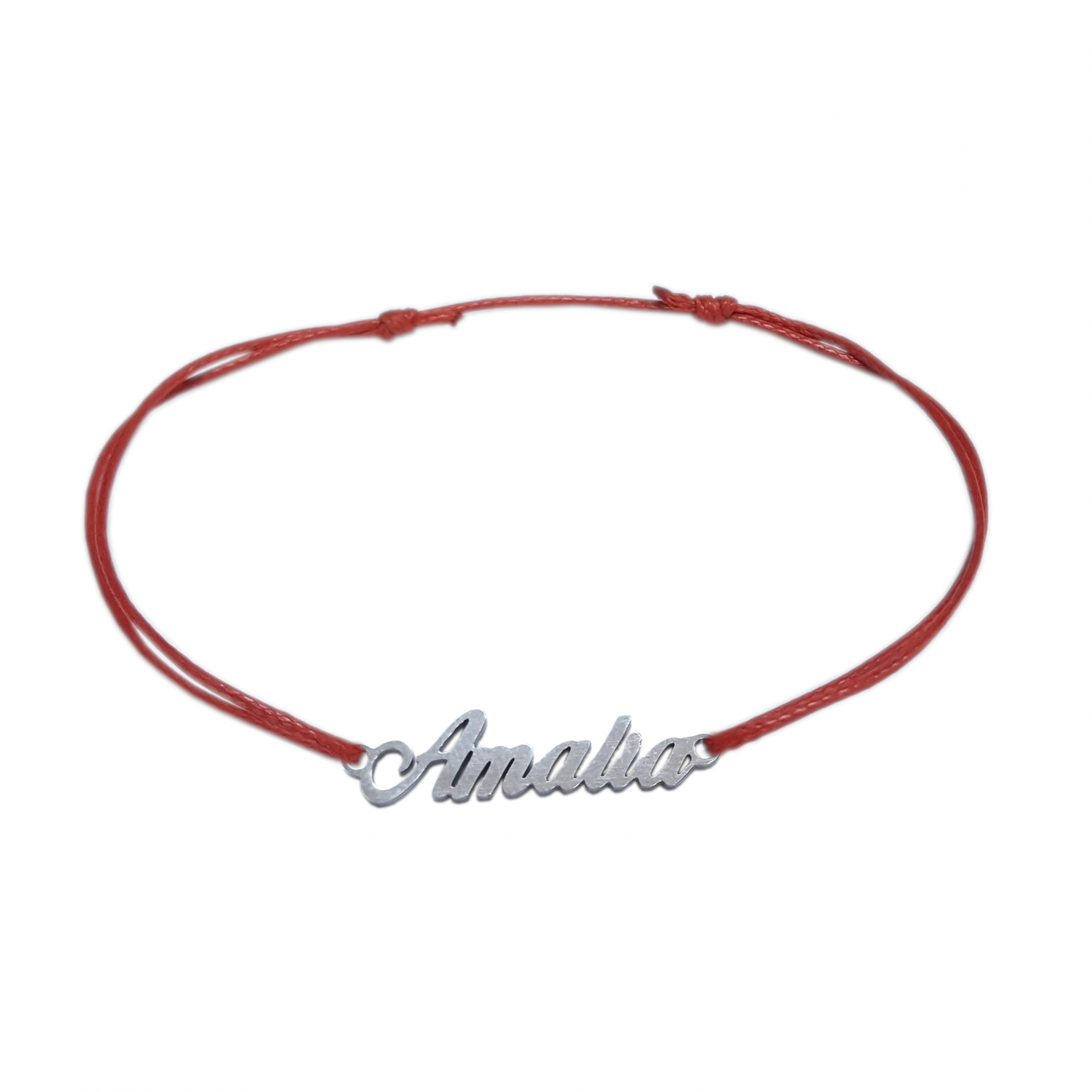 Martisor Bratara snur rosu personalizata nume Amalia argint 9438100 Dras. Compozitie: Argint 740. Cutie de bijuterii cadou.