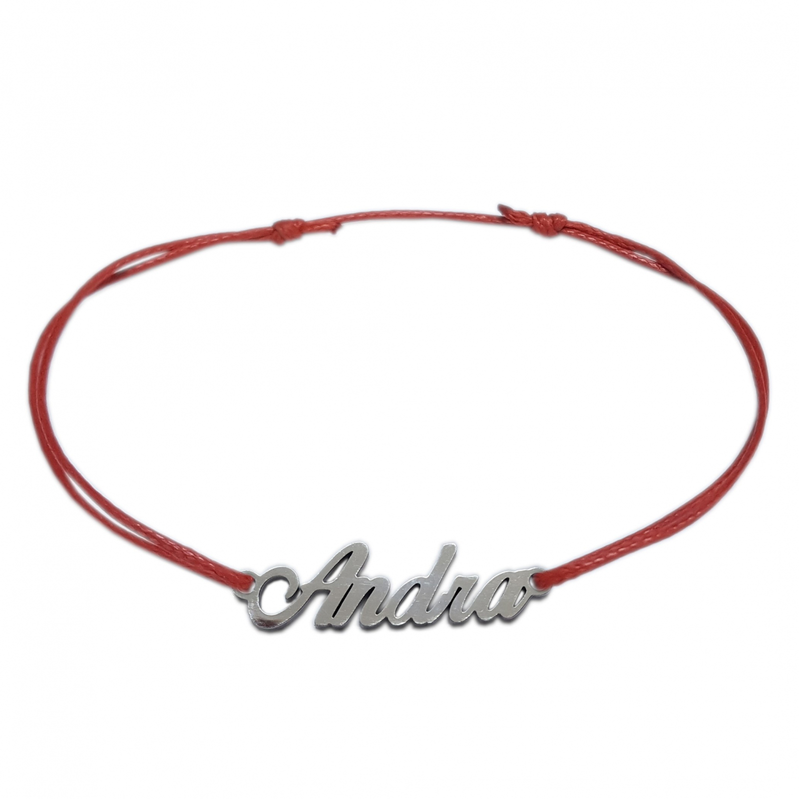 Martisor Bratara snur rosu personalizata nume Andra argint 9440100 Dras. Compozitie: Argint 740. Cutie de bijuterii cadou.