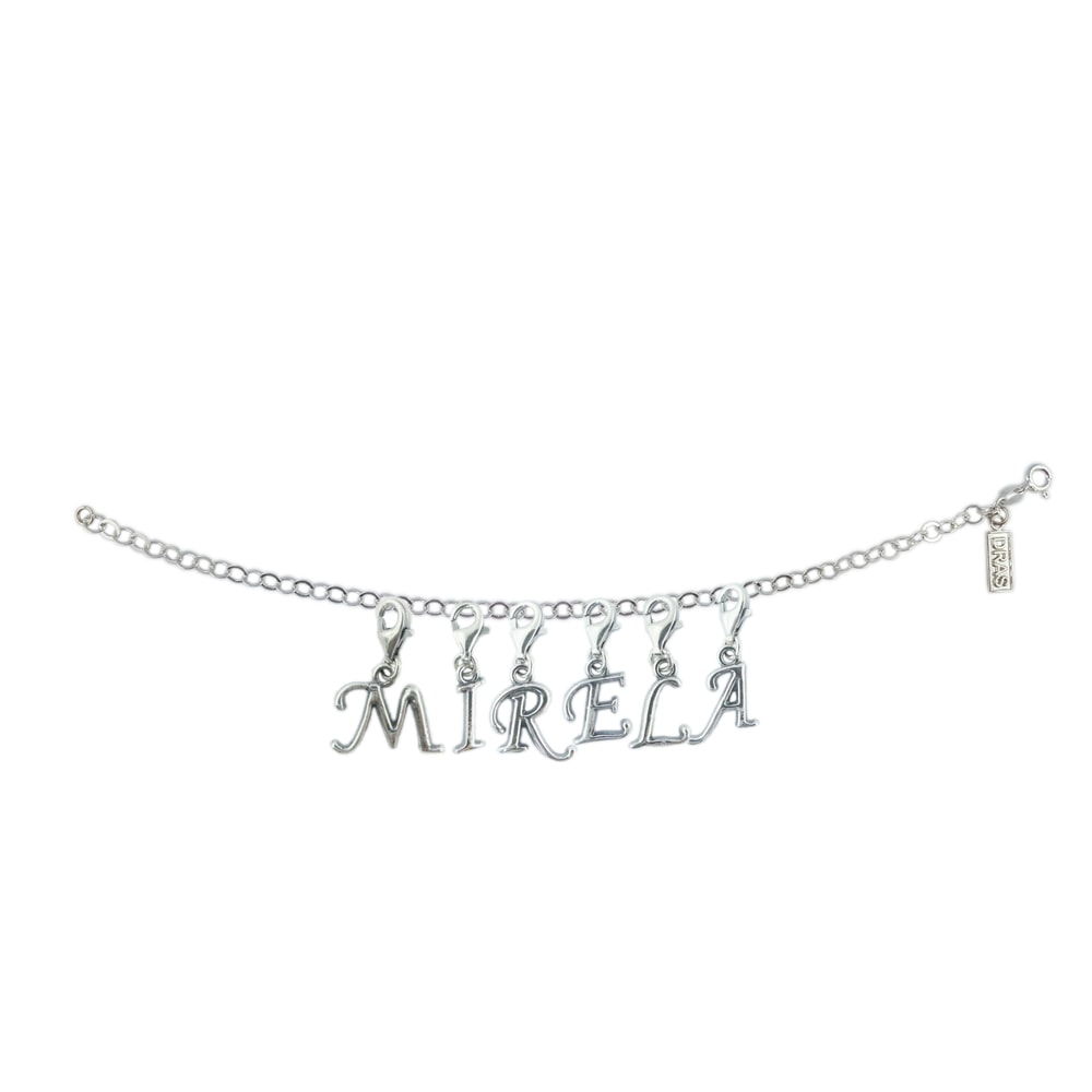 Bratara argint personalizata nume Mirela pandantive litere argint carabina reglabila GIOTTO995 Dras