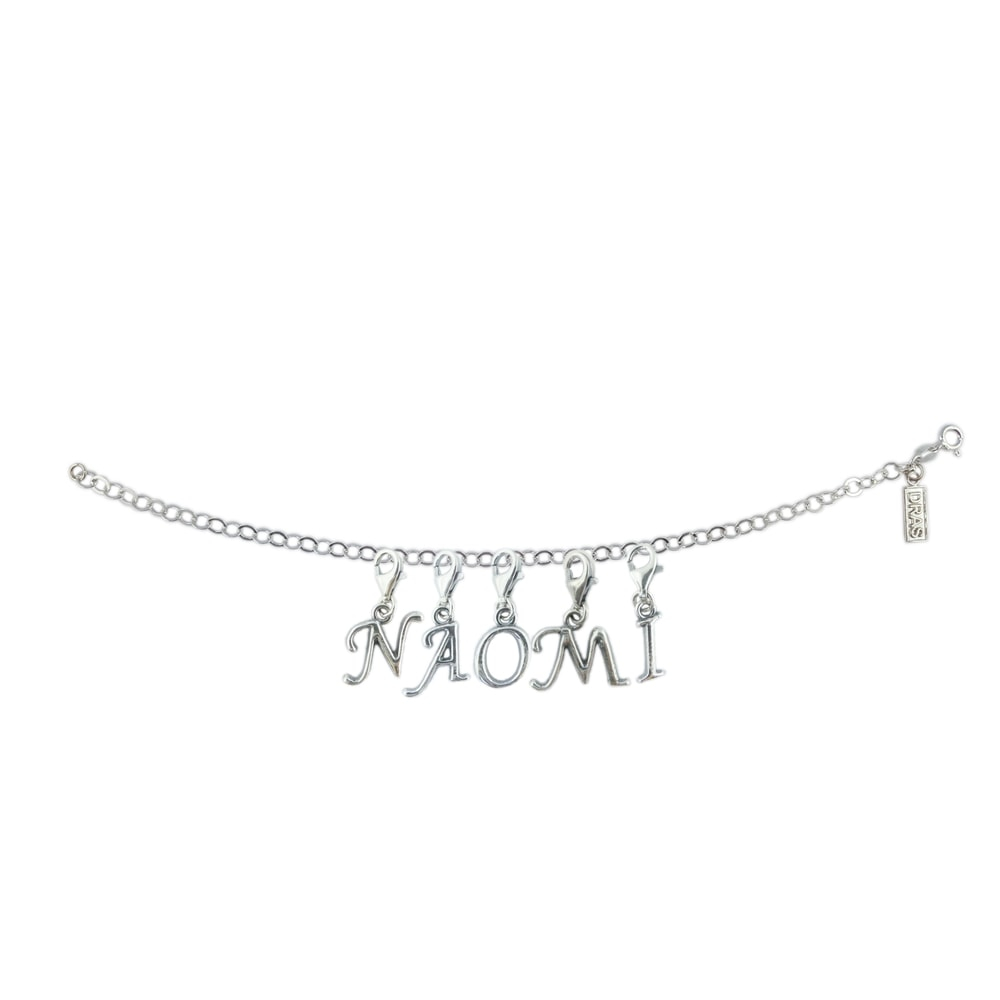 Bratara argint personalizata nume Naomi pandantive litere argint carabina reglabila GIOTTO885 Dras