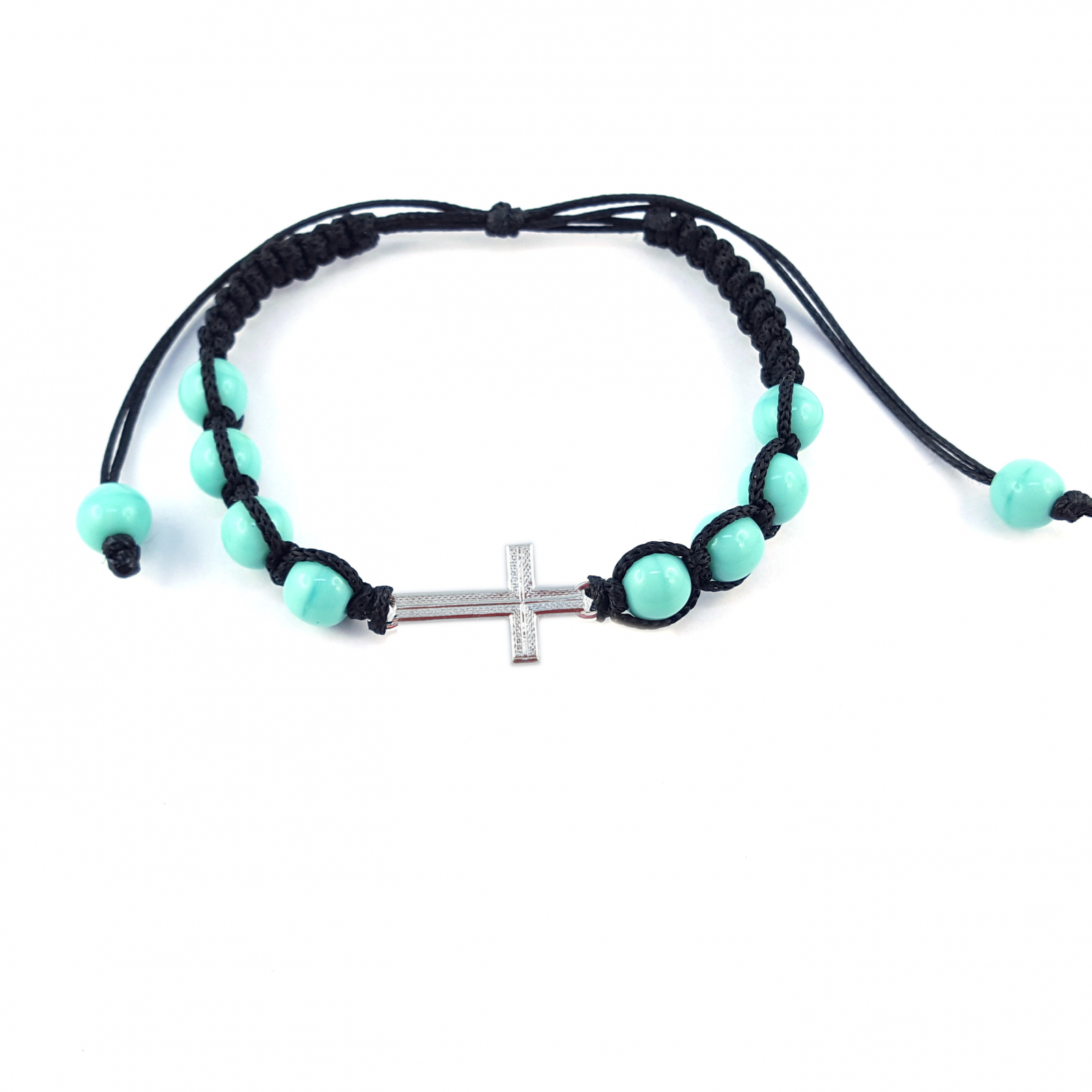 Bratara snur negru impletit manual personalizata cruciulita argint margele turcoaz sticla Bohemia reglabila 4197210 Dras
