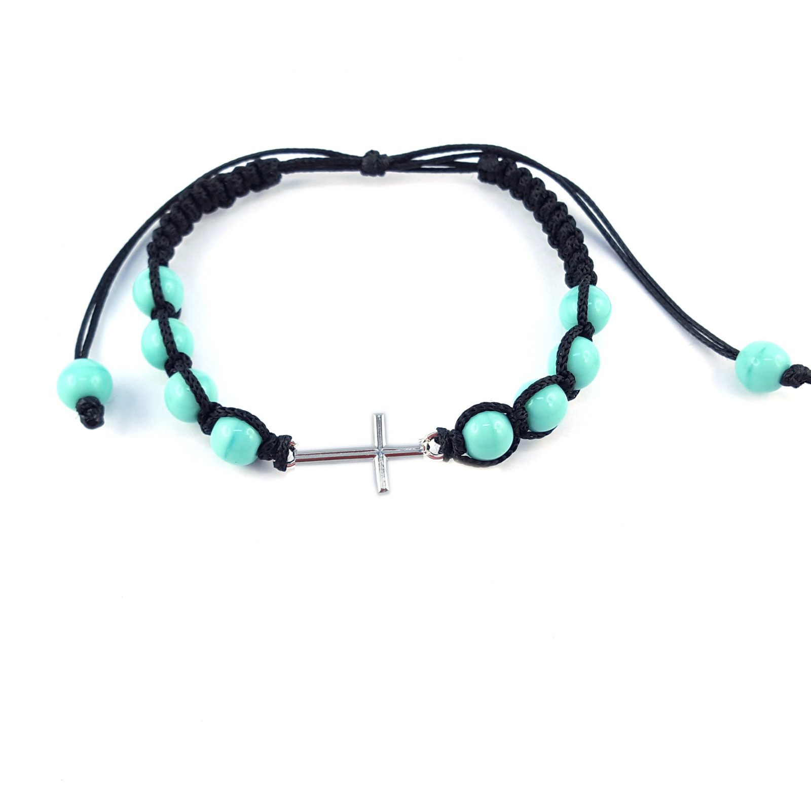 Bratara snur negru impletit manual personalizata cruciulita argint margele turcoaz sticla Bohemia reglabila 4204150 Dras