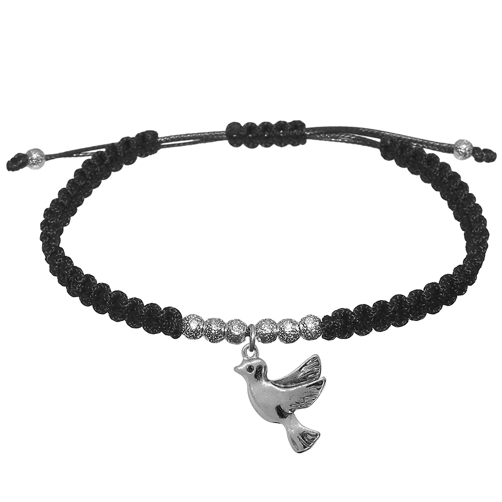 Bratara snur negru impletita manual personalizata Porumbel argint 9689320 Dras
