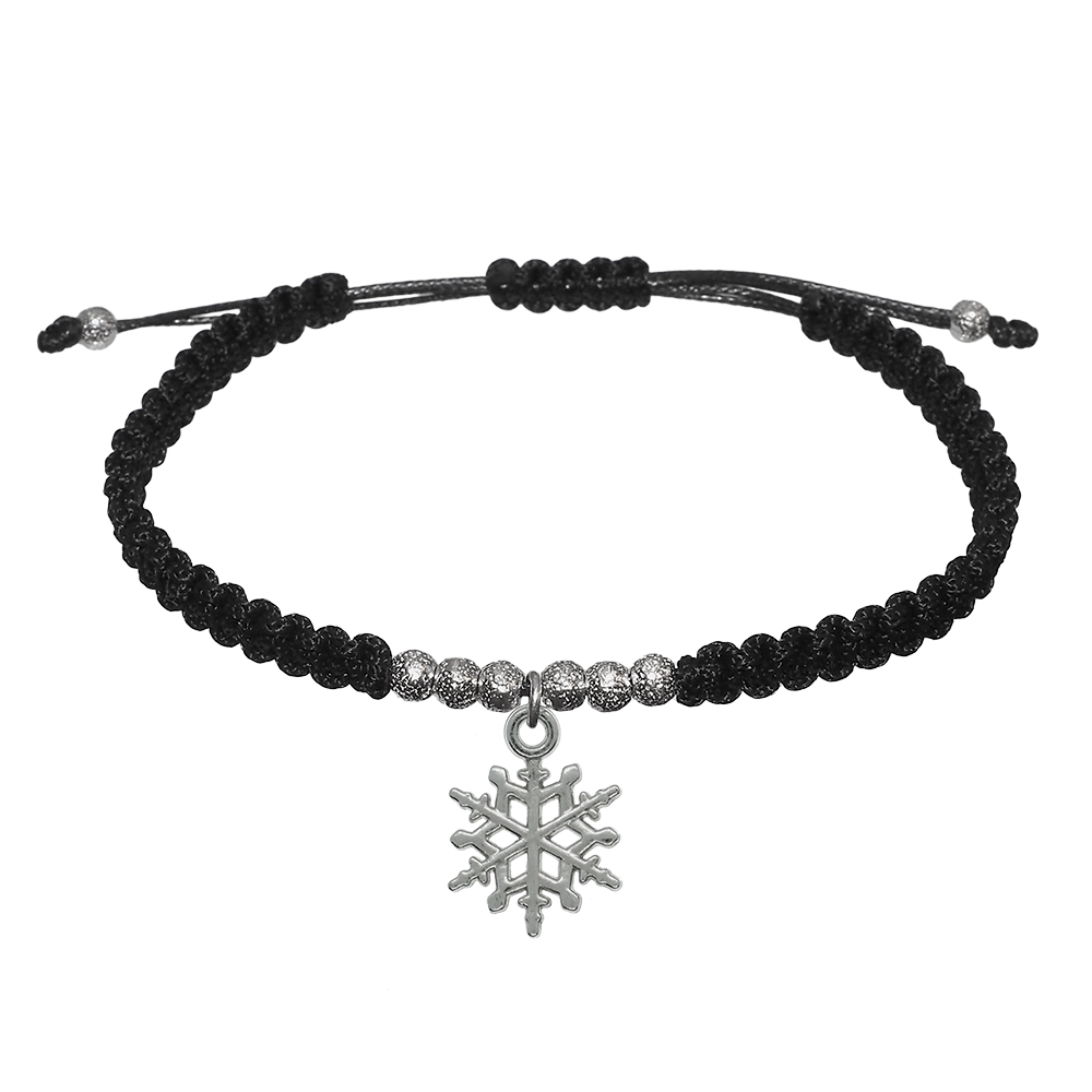Bratara snur negru impletit manual personalizata Fulg si margele argint 10023310 Dras