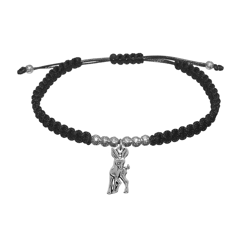 Bratara snur negru impletita manual personalizata Caprioara argint 9873330 Dras