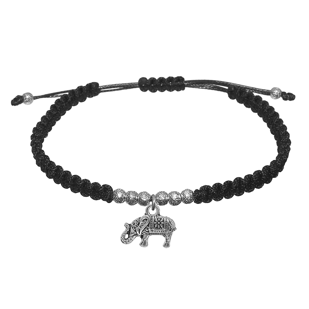 Bratara snur negru impletita manual personalizata Elefant argint 9697420 Dras