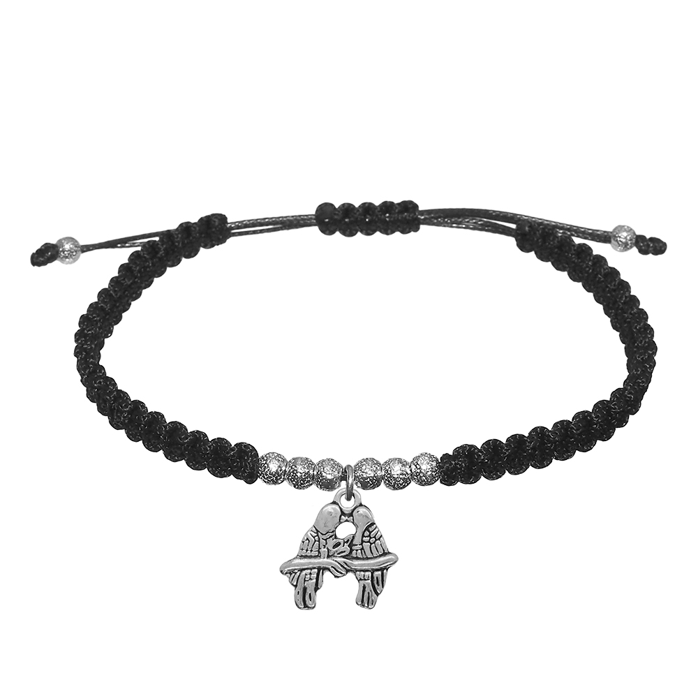 Bratara snur negru impletita manual personalizata Porumbei argint 9856370 Dras