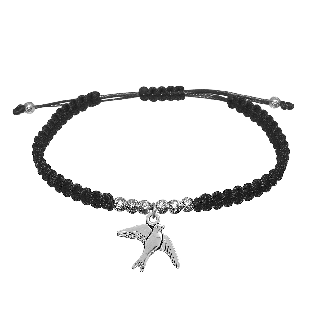Bratara snur negru impletita manual personalizata Randunica argint 9855280 Dras