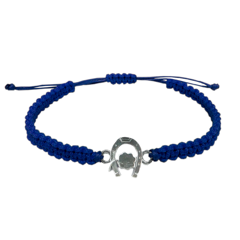 Bratara snur albastru impletit manual personalizata Potcoava cu trifoi argint 4535100 Dras