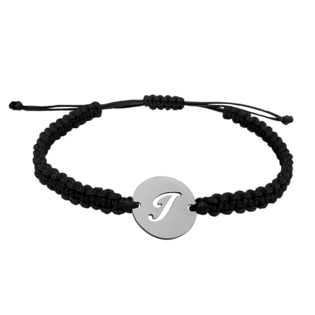 Bratara snur negru impletit manual personalizata banut decupat argint Litera I 9479140 Dras