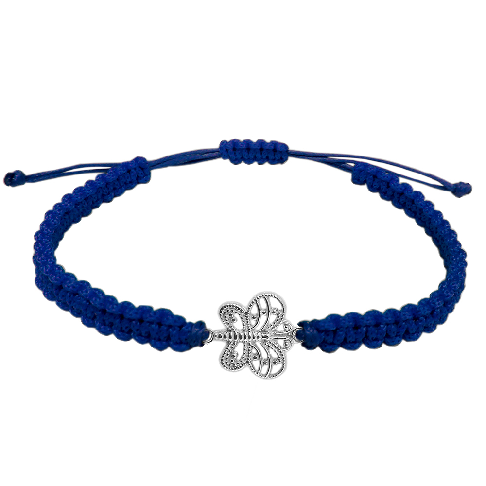 Bratara snur albastru impletit manual personalizata Fluturas argint 9258125 Dras