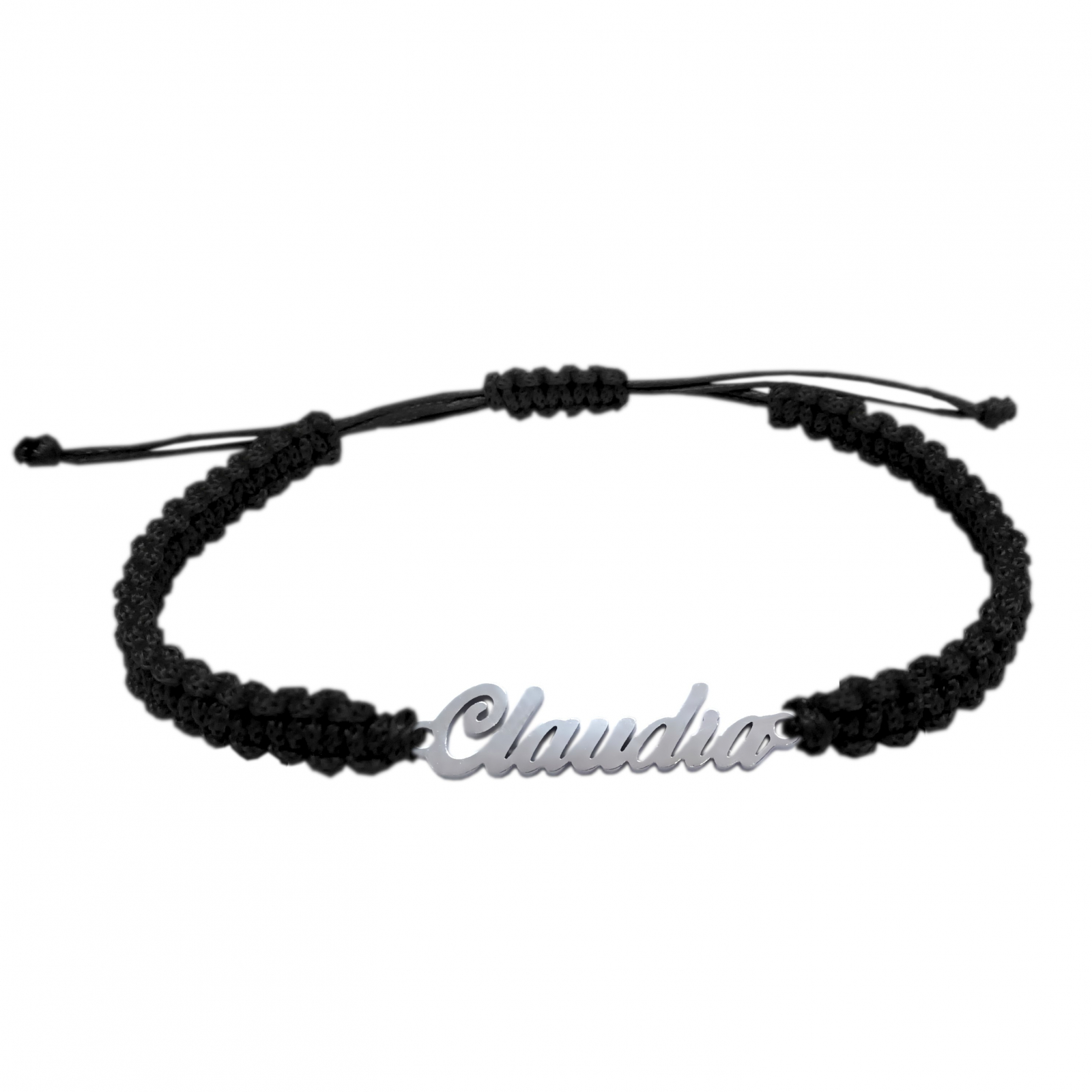 Bratara snur negru impletit manual personalizata nume Claudia argint 9437100 Dras