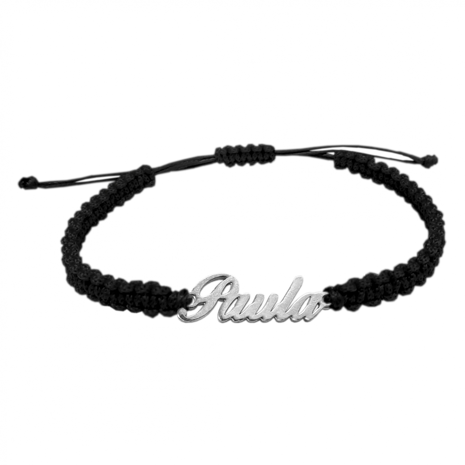 Bratara snur negru impletit manual personalizata nume Paula argint 9431100 Dras