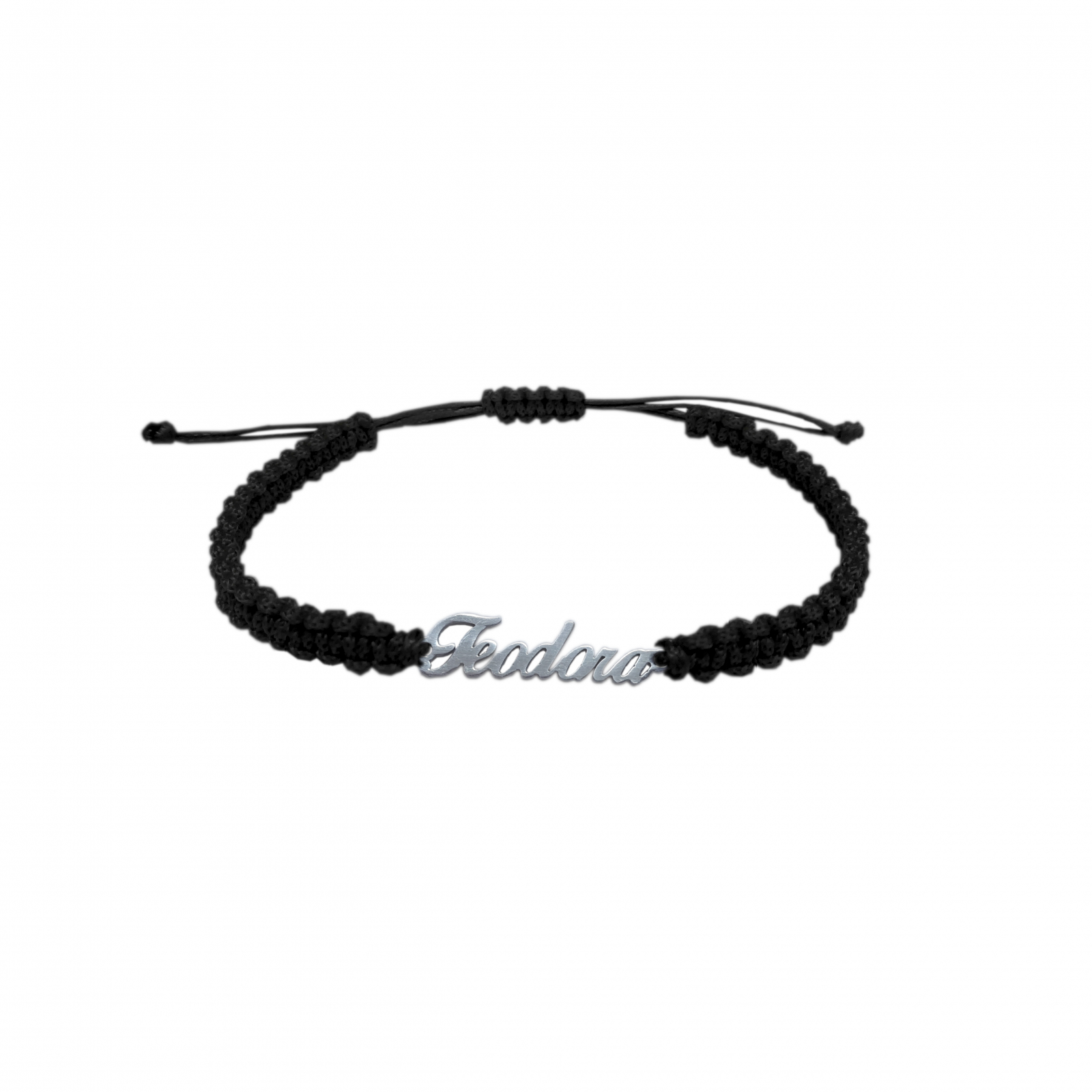 Bratara snur negru impletit manual personalizata nume Teodora argint 9422100 Dras