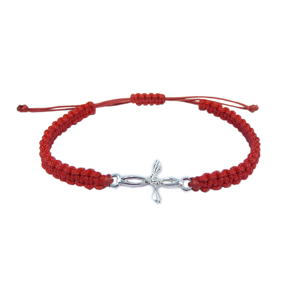 Bratara snur rosu impletit manual personalizata cruciulita argint 4240100 Dras