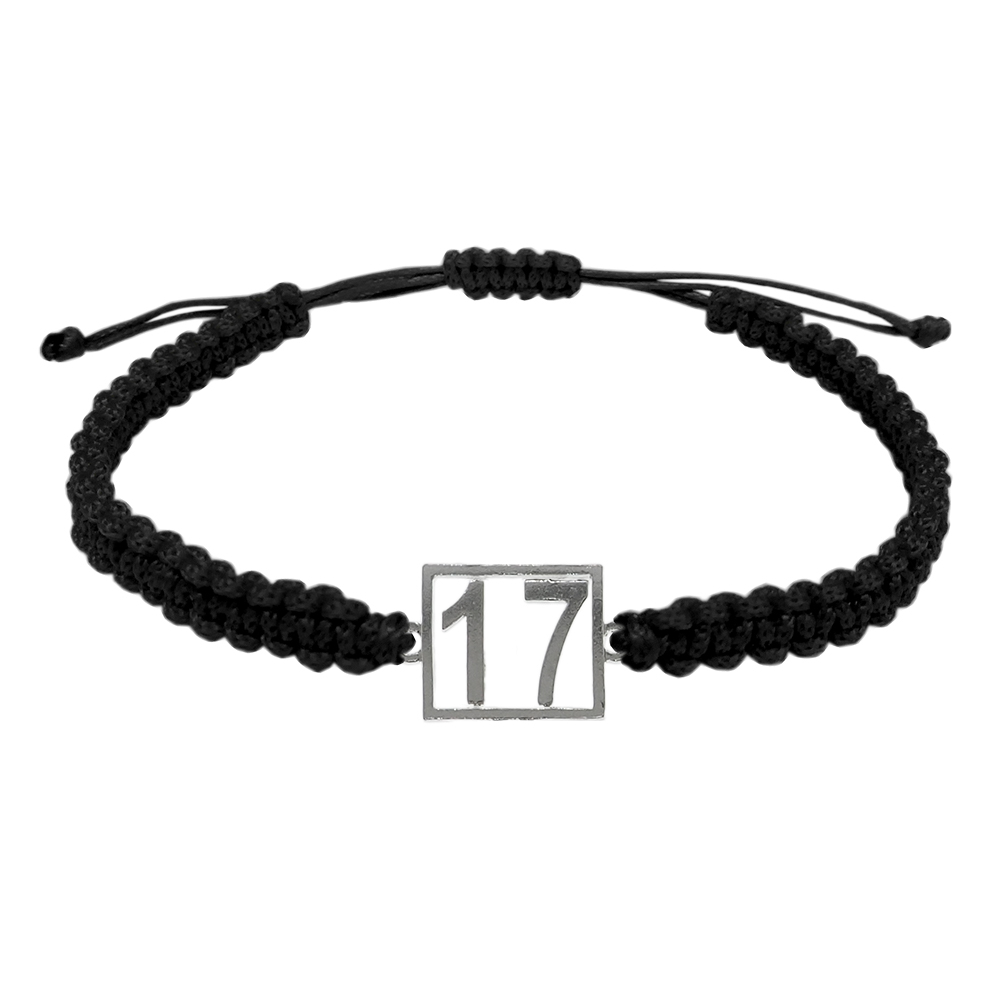 Bratara snur negru impletita manual personalizata Cifra 17 argint numar norocos cifre aniversare 10251_7260 Dras