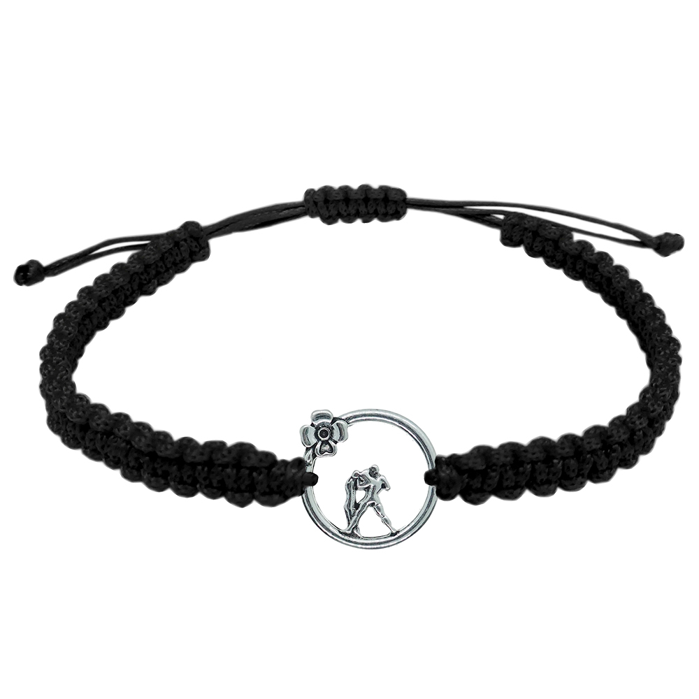 Bratara snur negru impletita manual personalizata zodie Varsator argint zodiac european 10154240 Dras