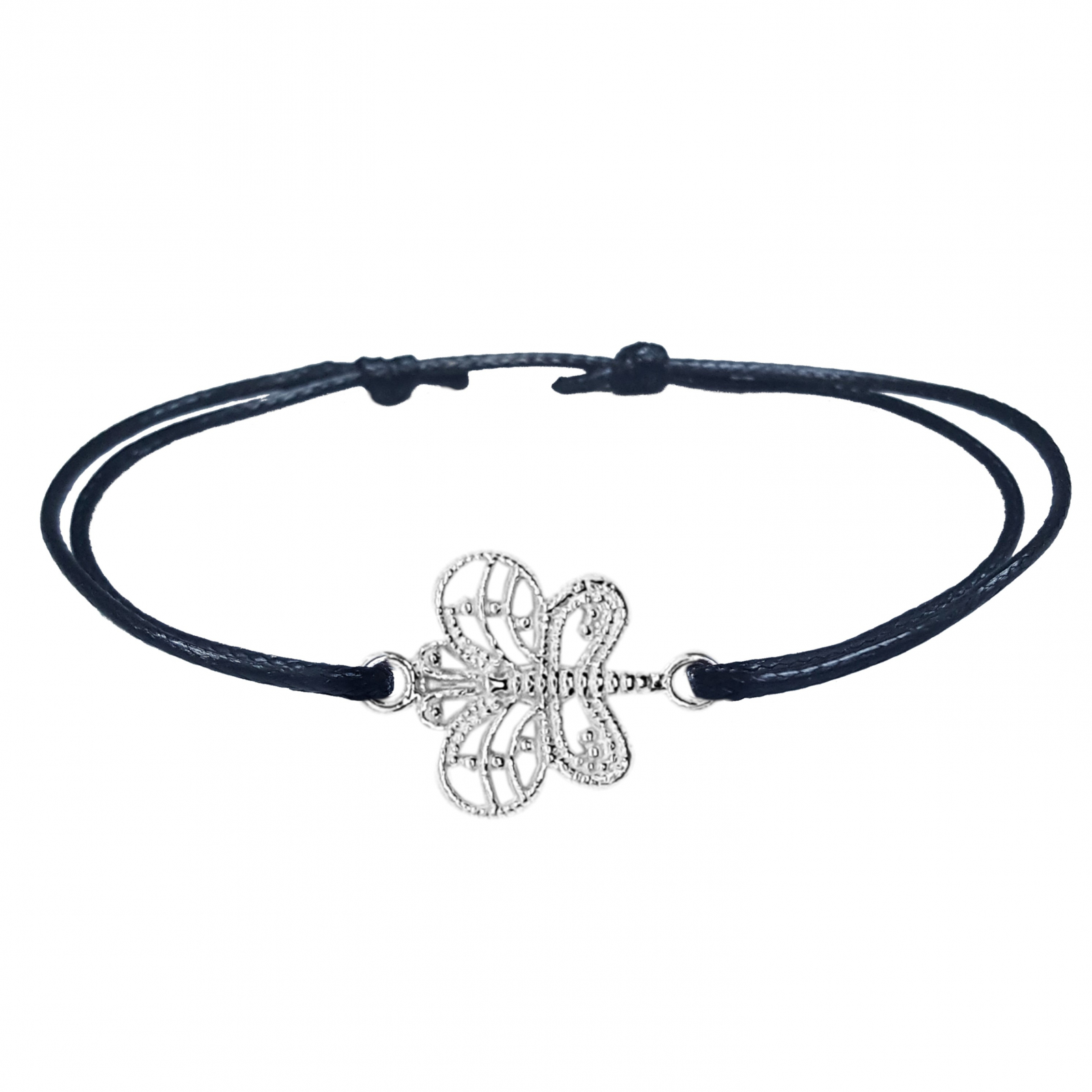 Bratara snur negru personalizata Fluturas argint 9258125 Dras