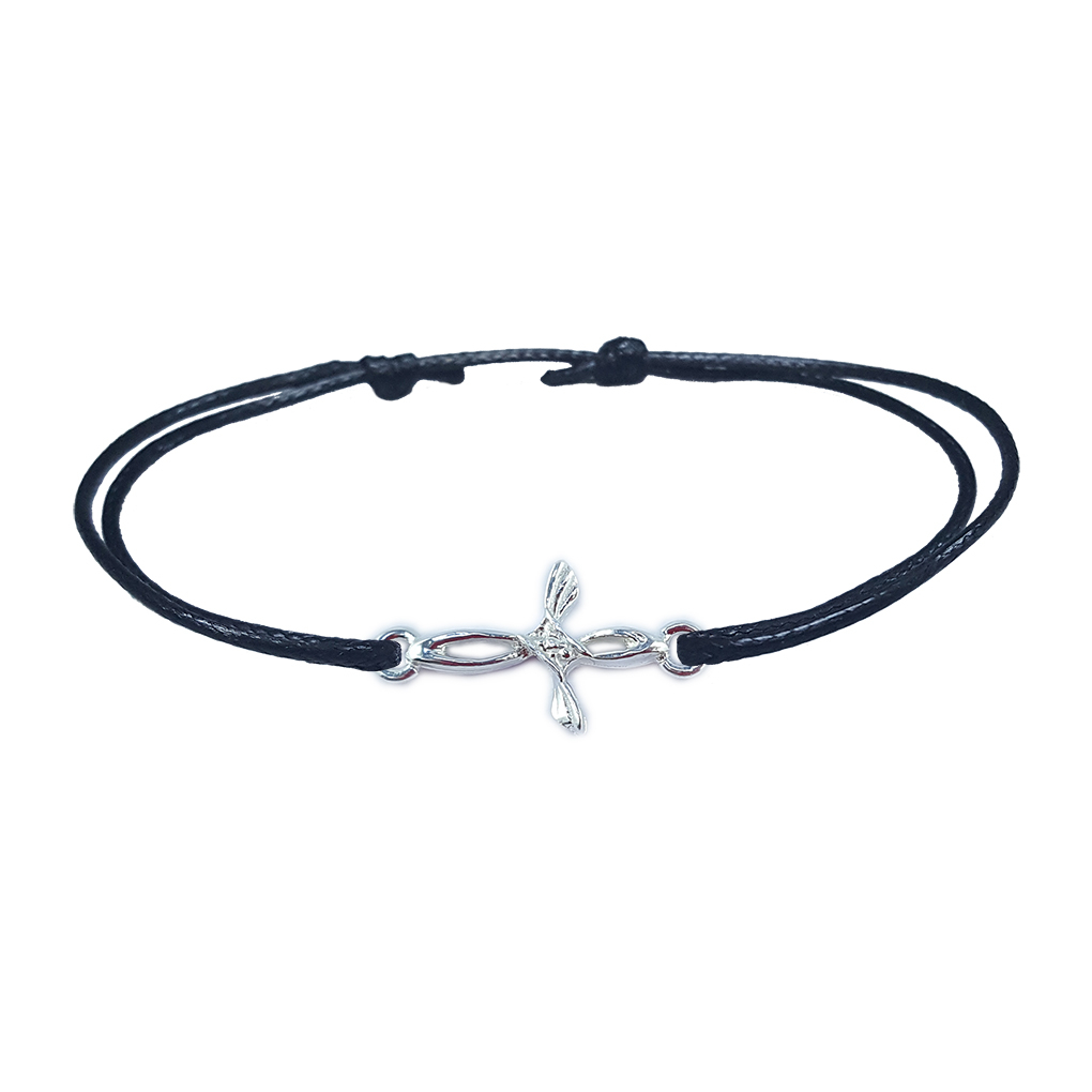 Bratara snur negru personalizata cruciulita argint 4240100 Dras