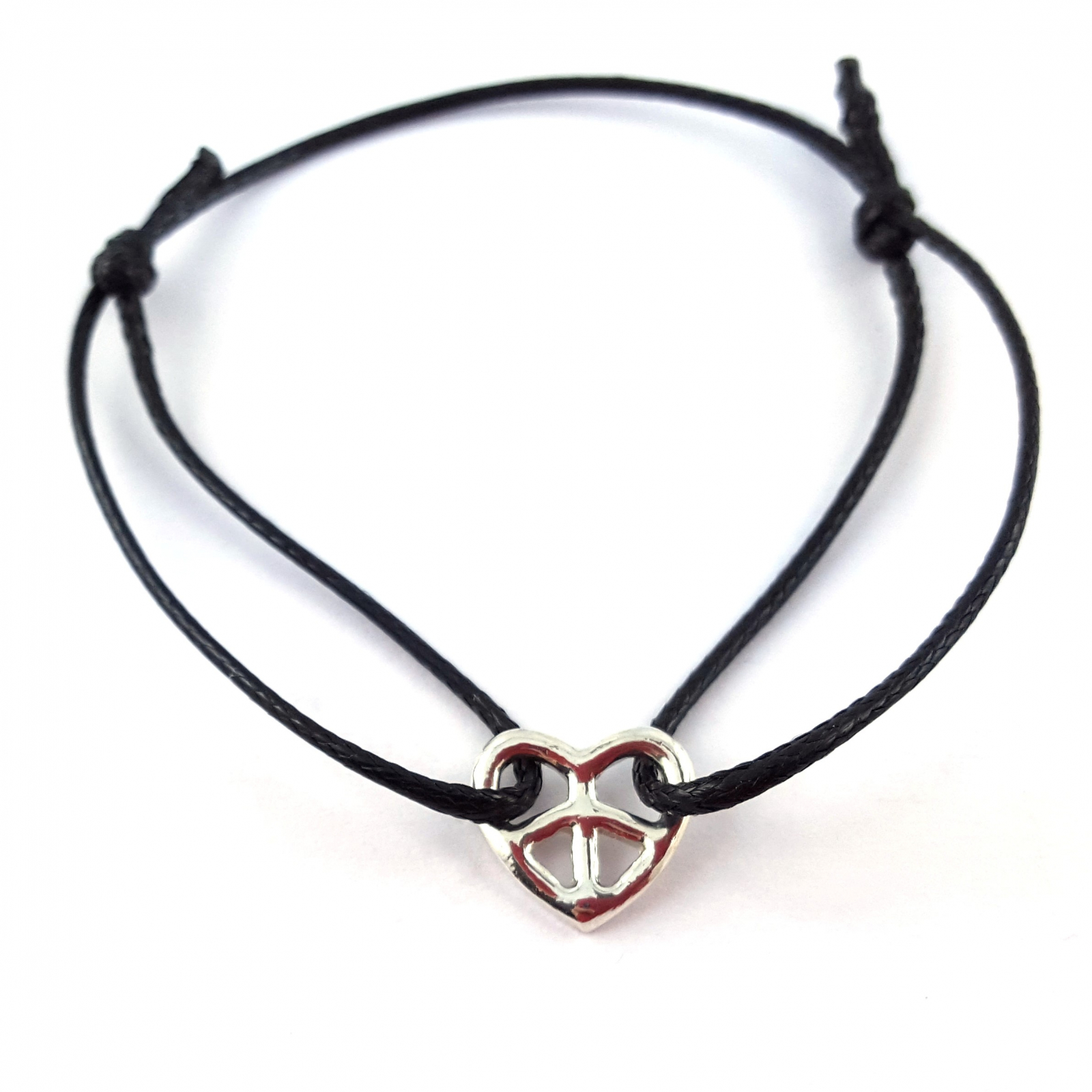 Bratara snur negru personalizata Inimioara Semnul pacii argint 9261110 Dras