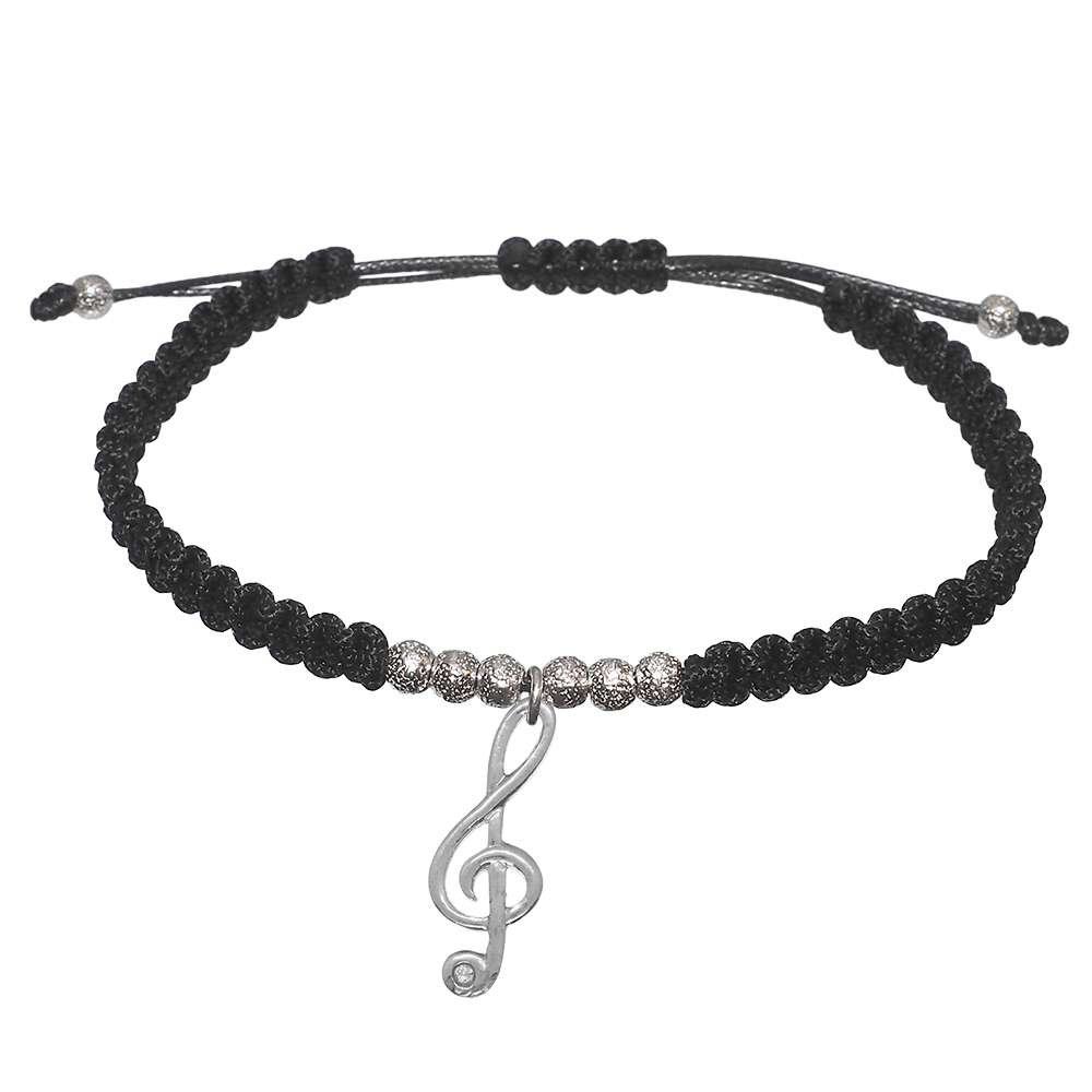 Bratara snur negru impletita manual personalizata Cheia sol margele argint 10124330 Dras
