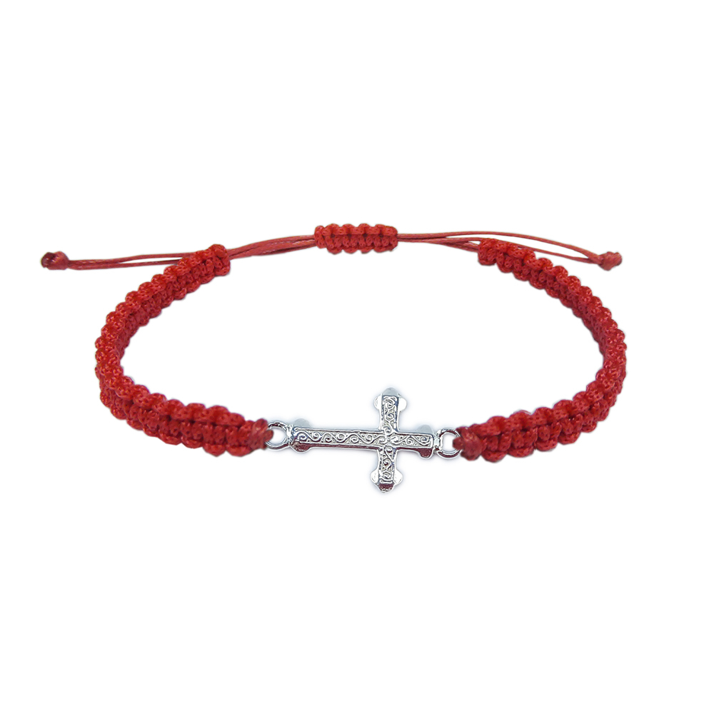 Bratara snur rosu impletit manual personalizata cruciulita argint 4183115 Dras