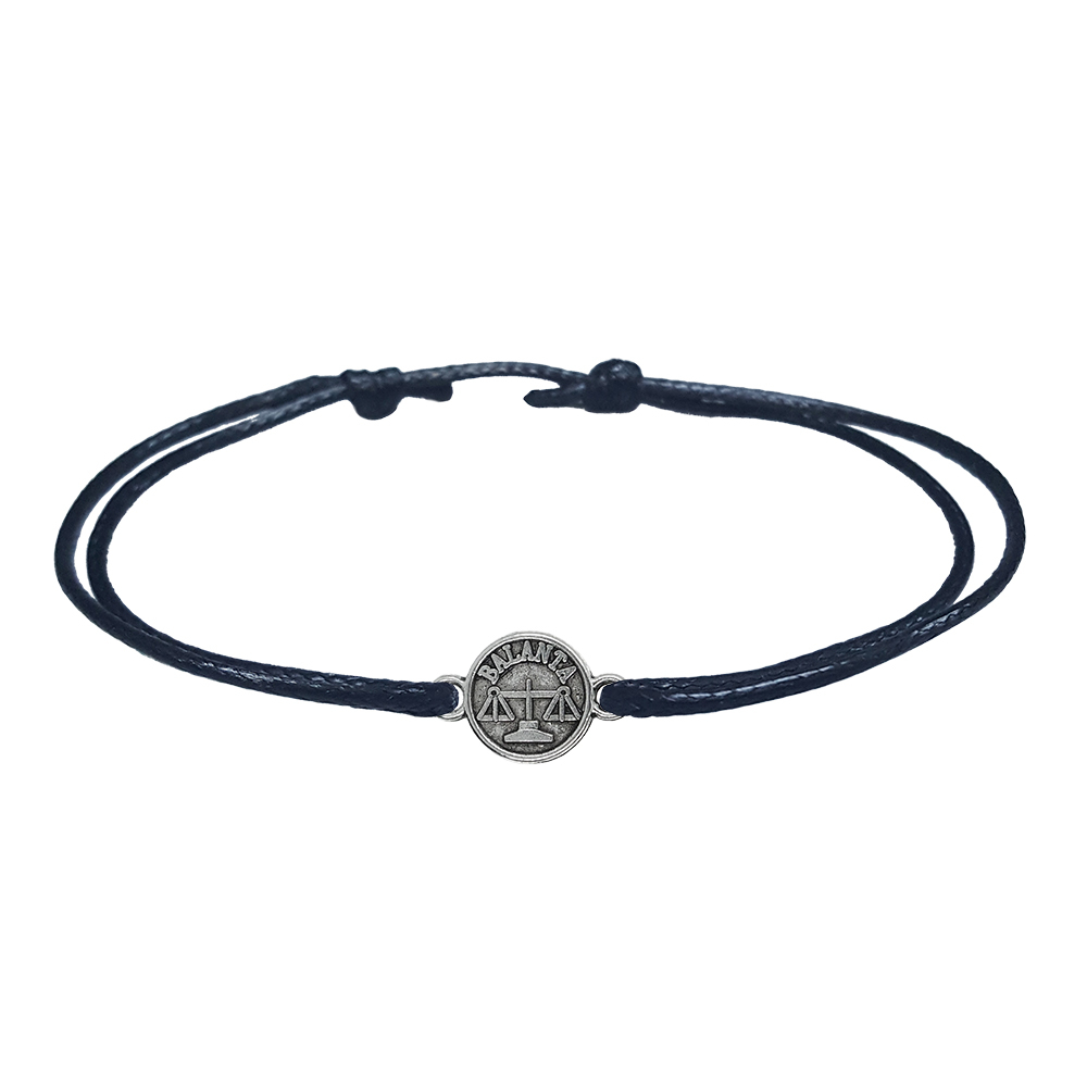Bratara snur negru personalizata zodie Balanta argint zodiac european 9791100 Dras