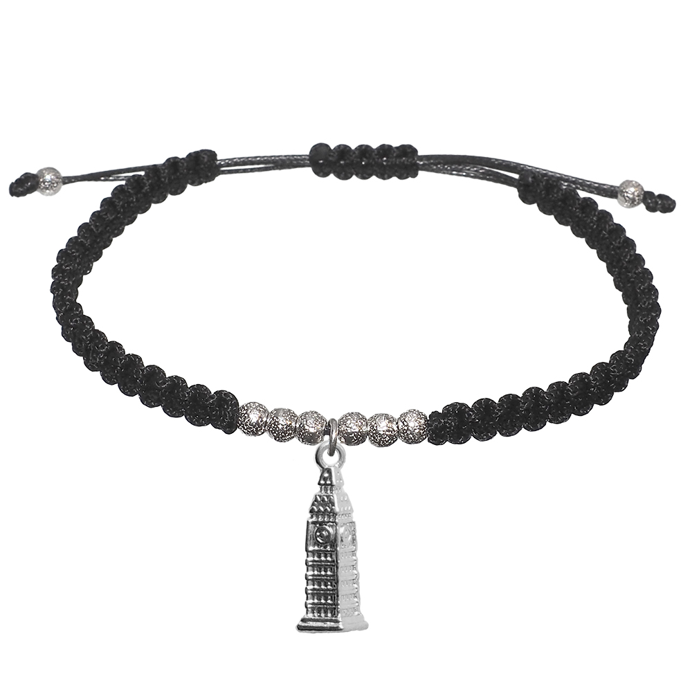 Bratara snur negru impletita manual personalizata Turnul din Pisa margele argint 10195700 Dras