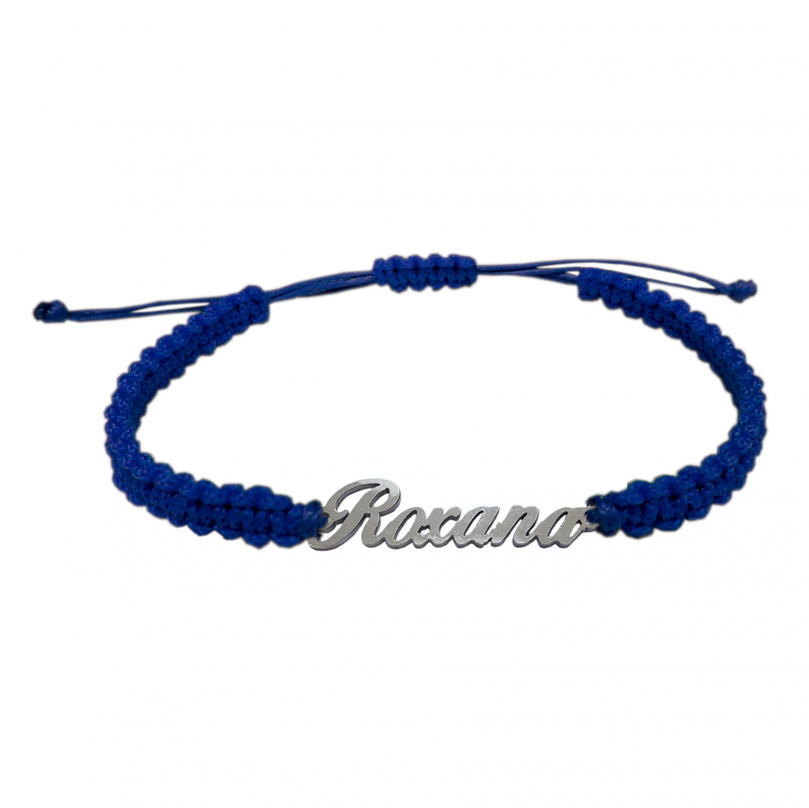 Bratara snur albastru impletit manual personalizata nume Roxana argint 9464100 Dras