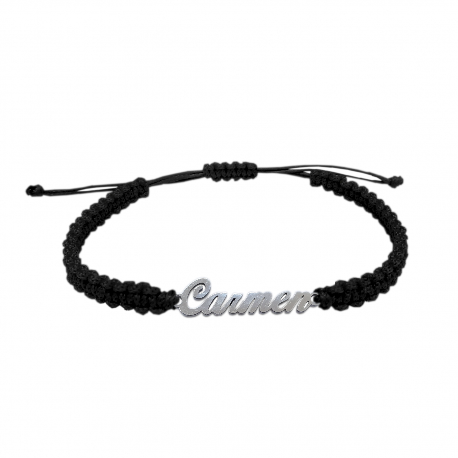 Bratara snur negru impletit manual personalizata nume Carmen argint 9445100 Dras