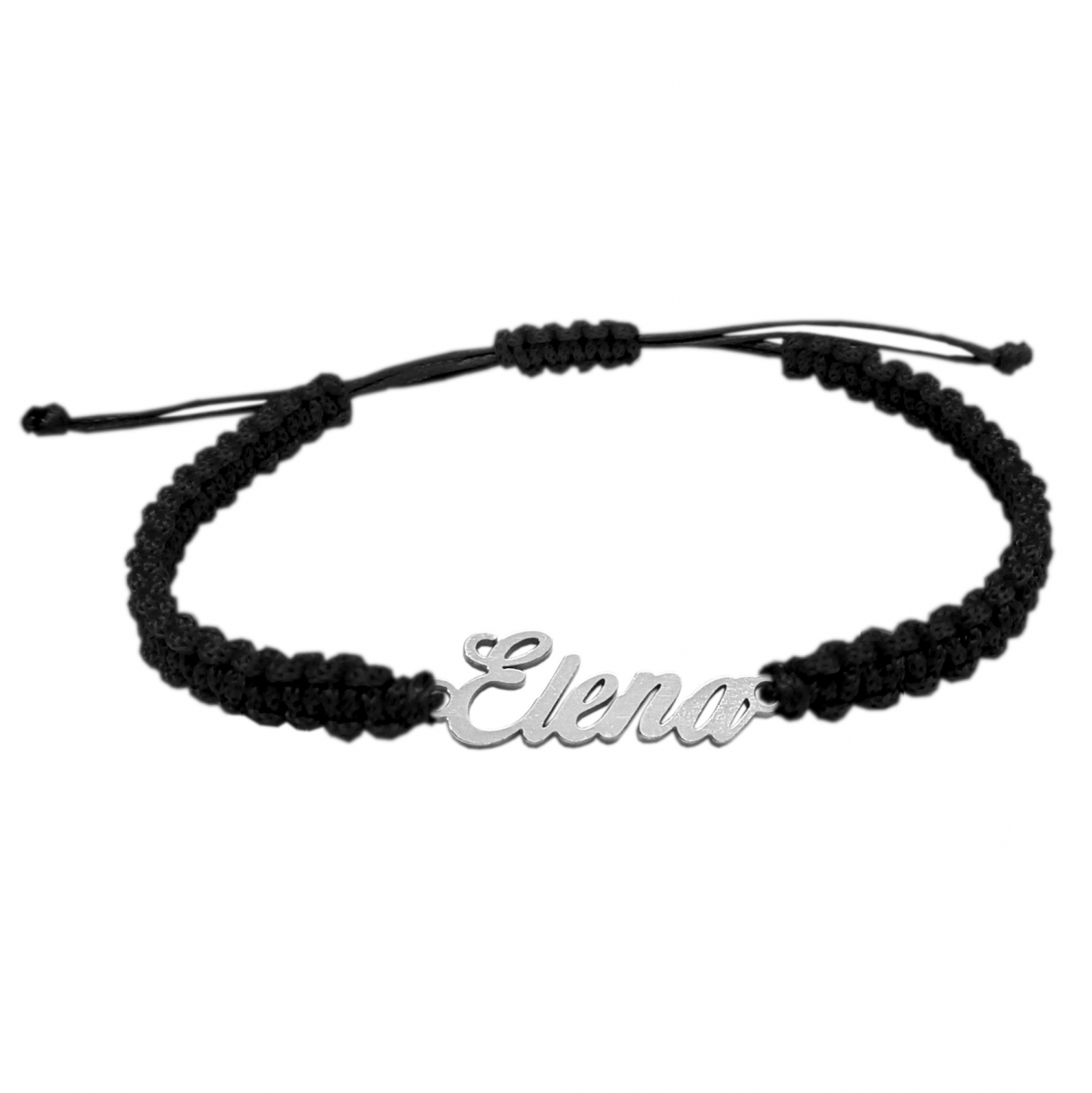 Bratara snur negru impletit manual personalizata nume Elena argint 9428100 Dras