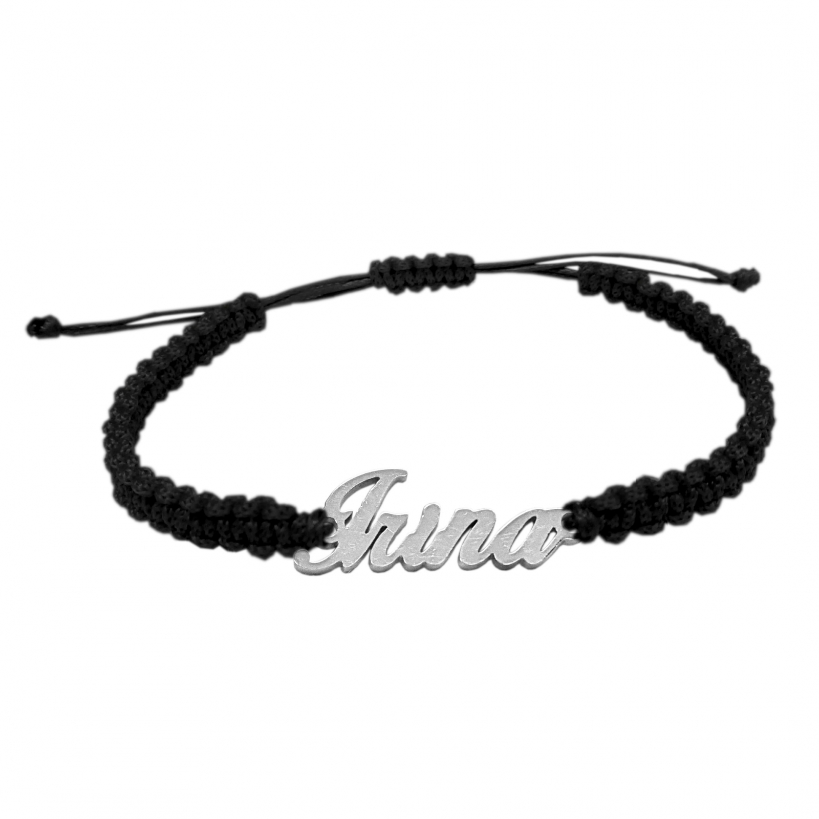 Bratara snur negru impletit manual personalizata nume Irina argint 9452100 Dras
