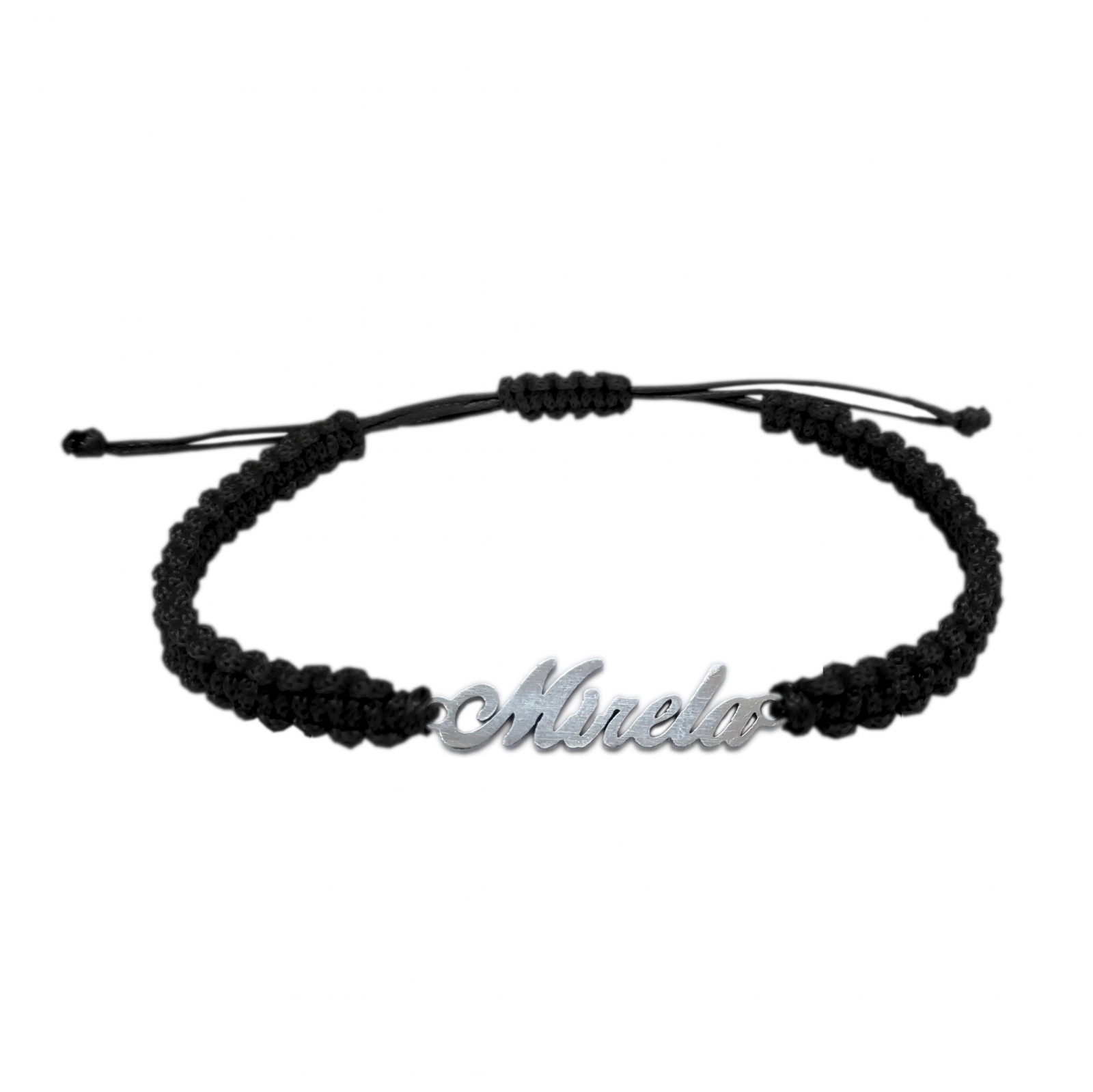 Bratara snur negru impletit manual personalizata nume Mirela argint 9444100 Dras