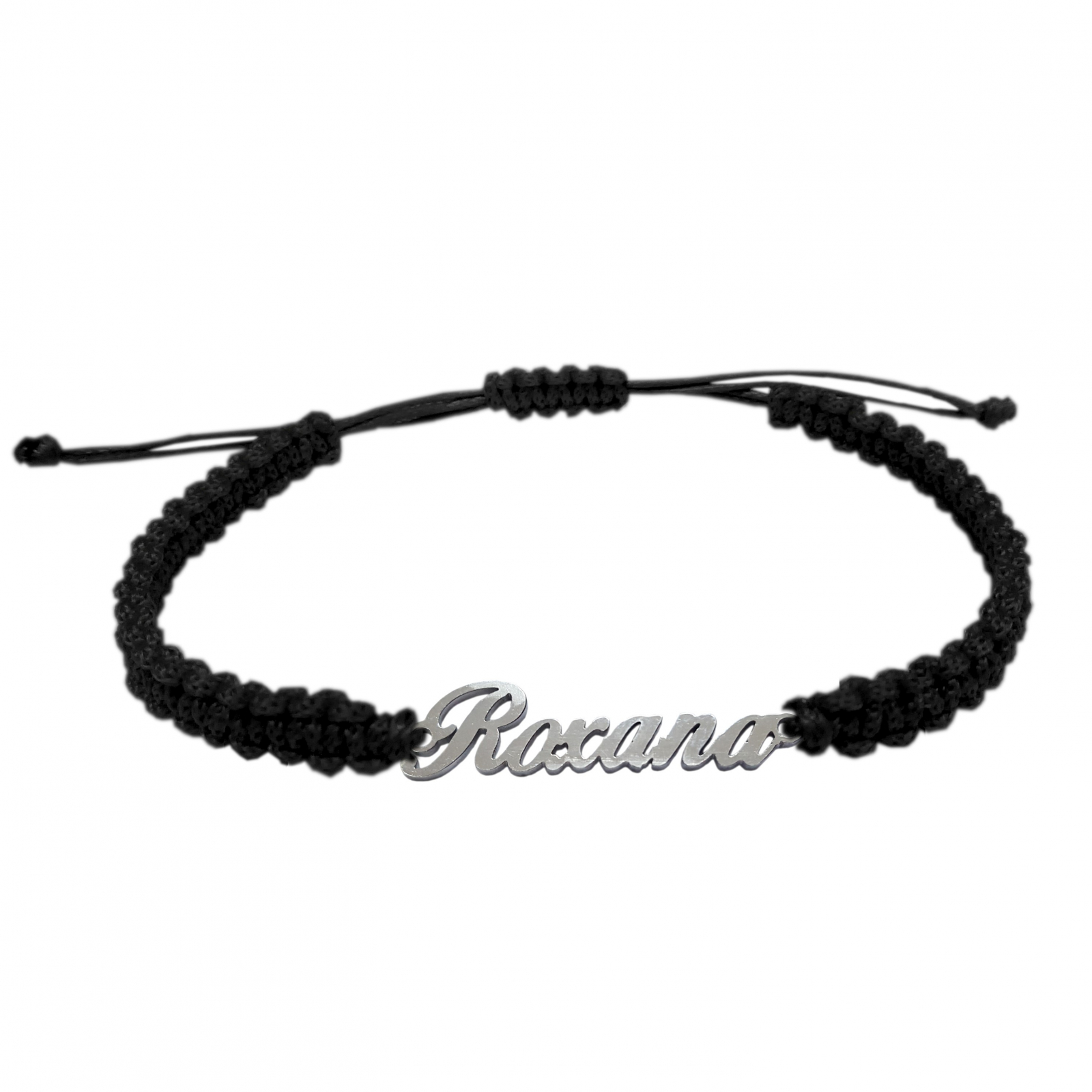 Bratara snur negru impletit manual personalizata nume Roxana argint 9464100 Dras