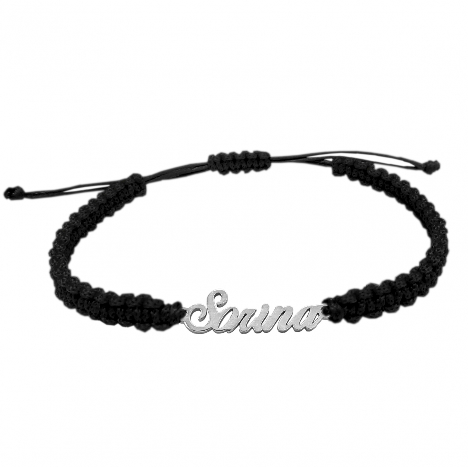 Bratara snur negru impletit manual personalizata nume Sorina argint 9458100 Dras