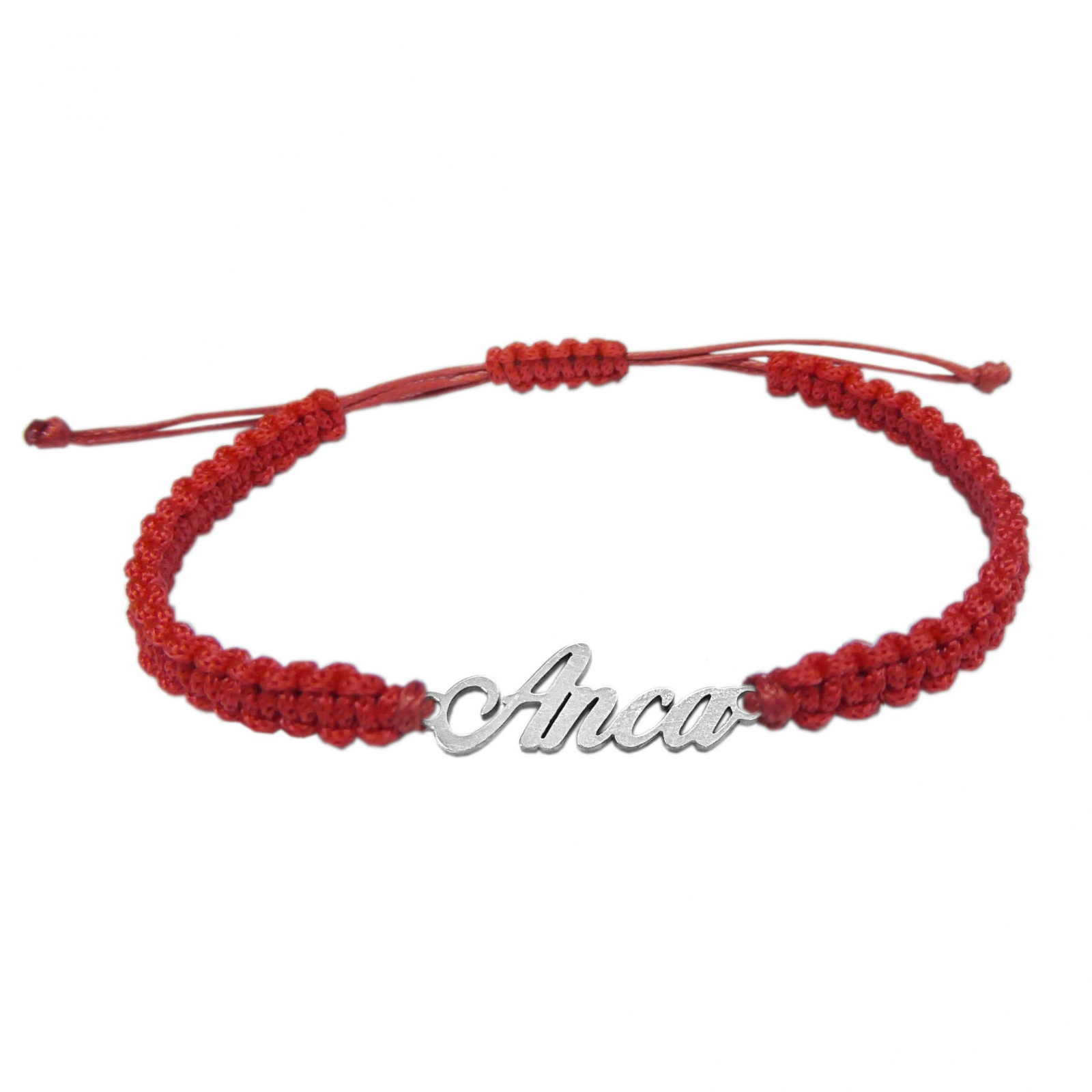 Bratara snur rosu impletit manual personalizata nume Anca argint 9430100 Dras