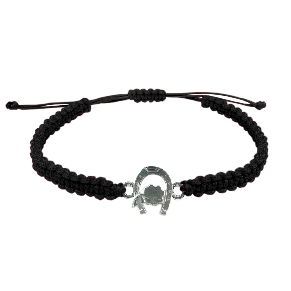 Bratara snur negru impletit manual personalizata Potcoava personalizata trifoi argint 4535100 Dras