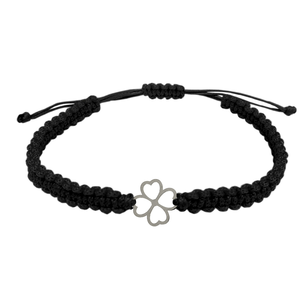 Bratara snur negru impletita manual personalizata Trifoi argint 10165100 Dras