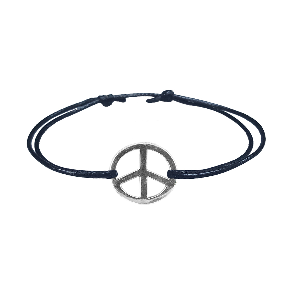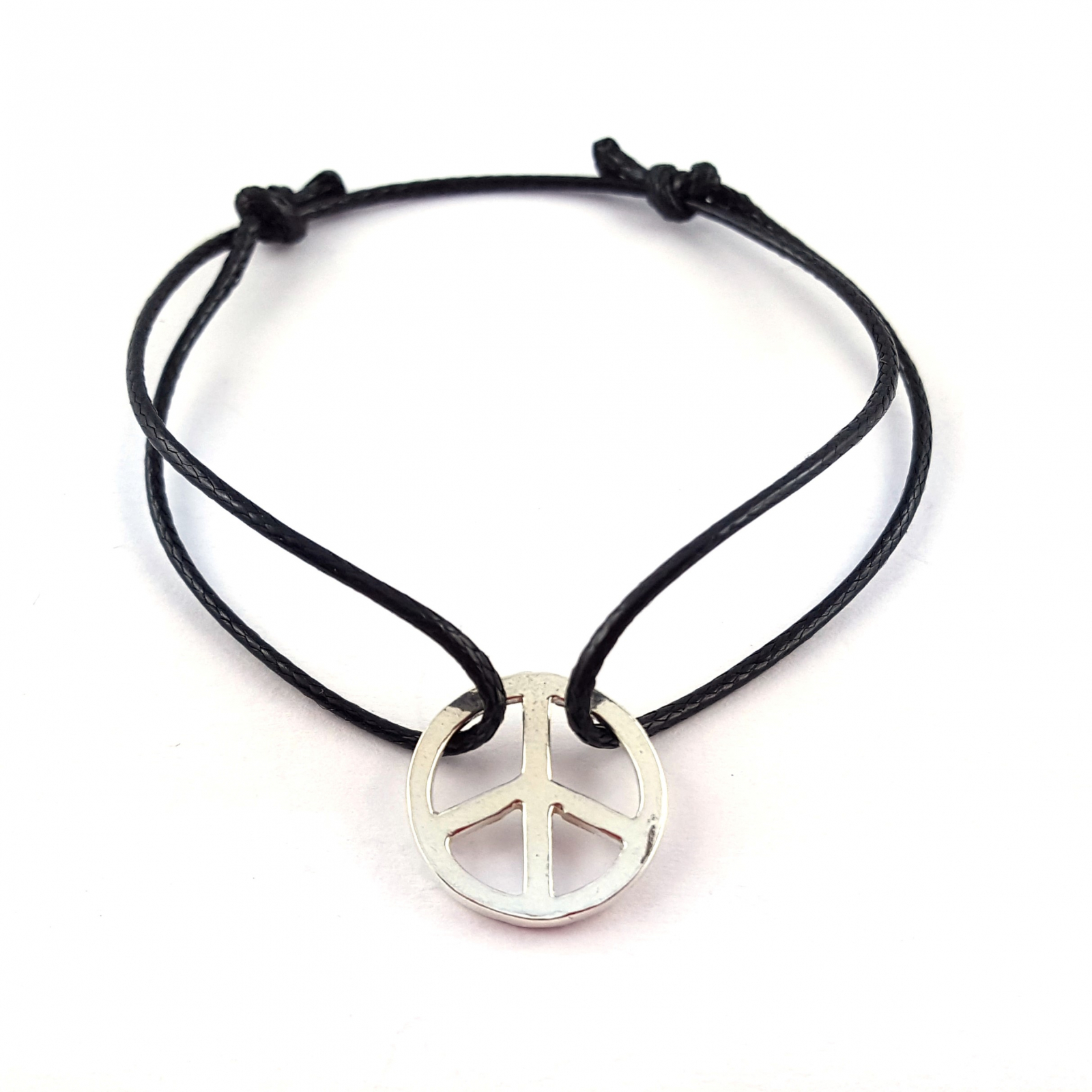 Bratara snur negru personalizata Semnul pacii argint 9210170 Dras