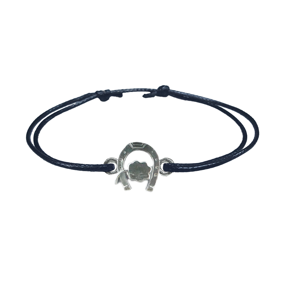Bratara snur negru personalizata Potcoava cu trifoi argint 4535100 Dras