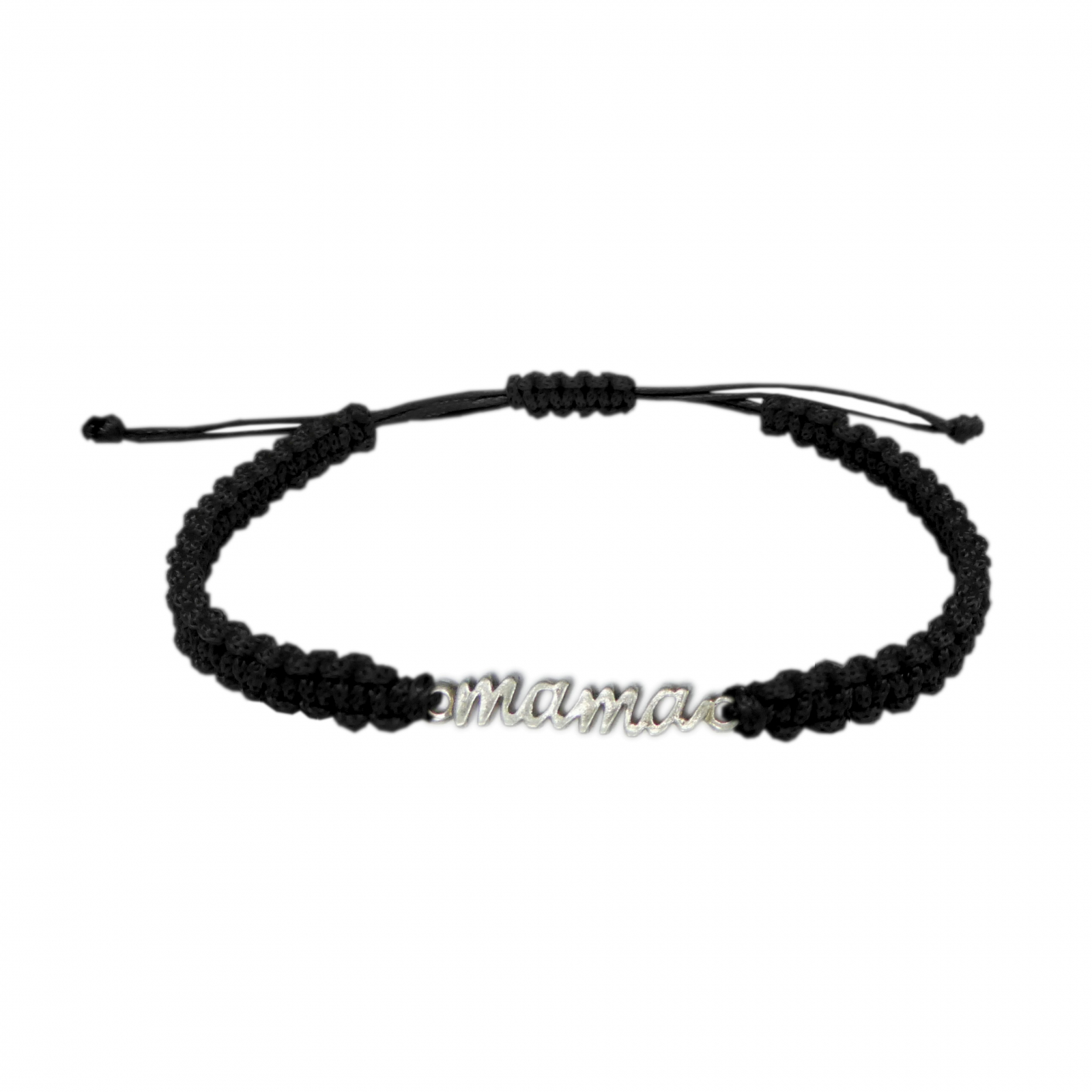 Bratara snur negru impletit manual personalizata text MAMA argint 9409140 Dras