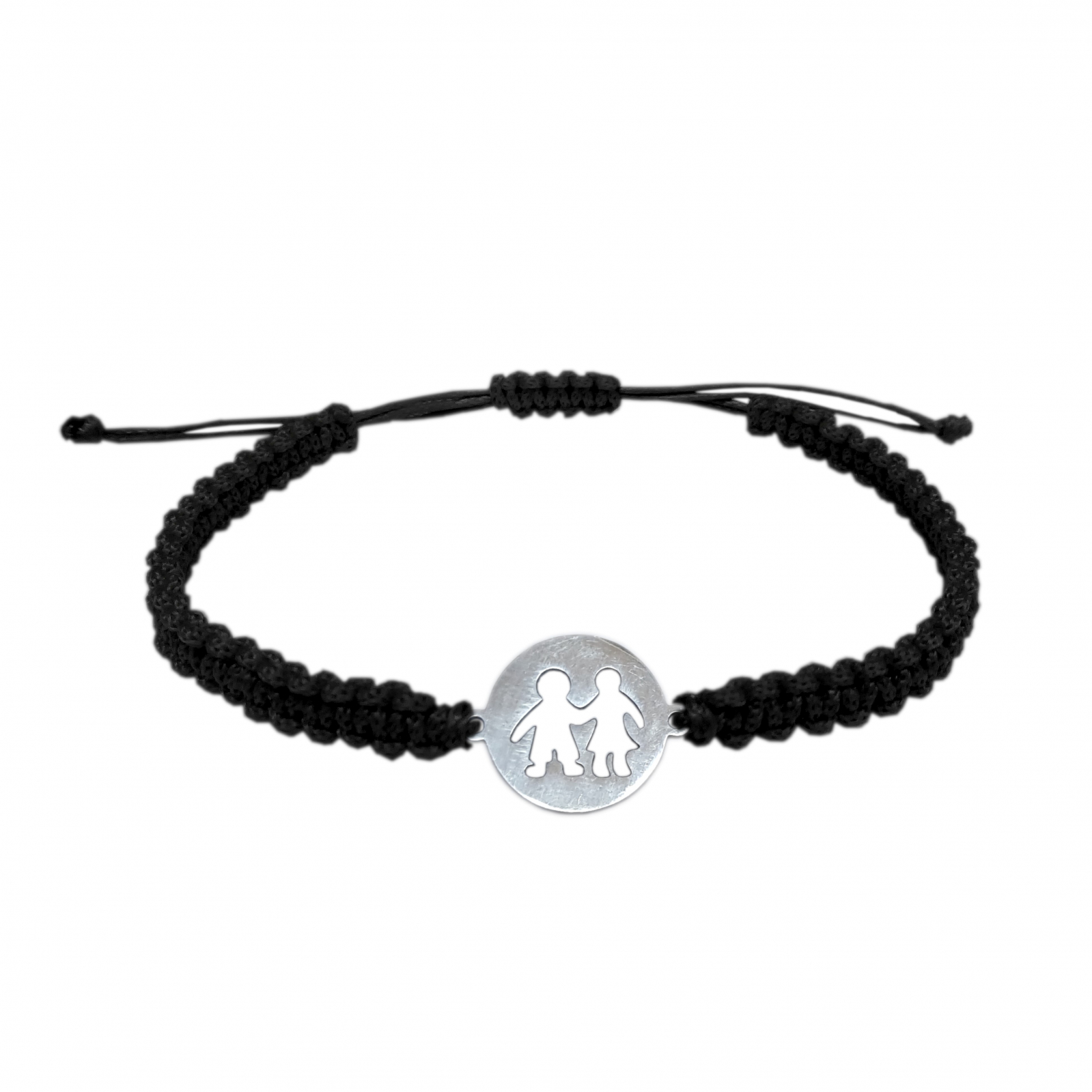 Bratara snur negru impletit manual personalizata banut decupat argint EL SI EA 9410110 Dras