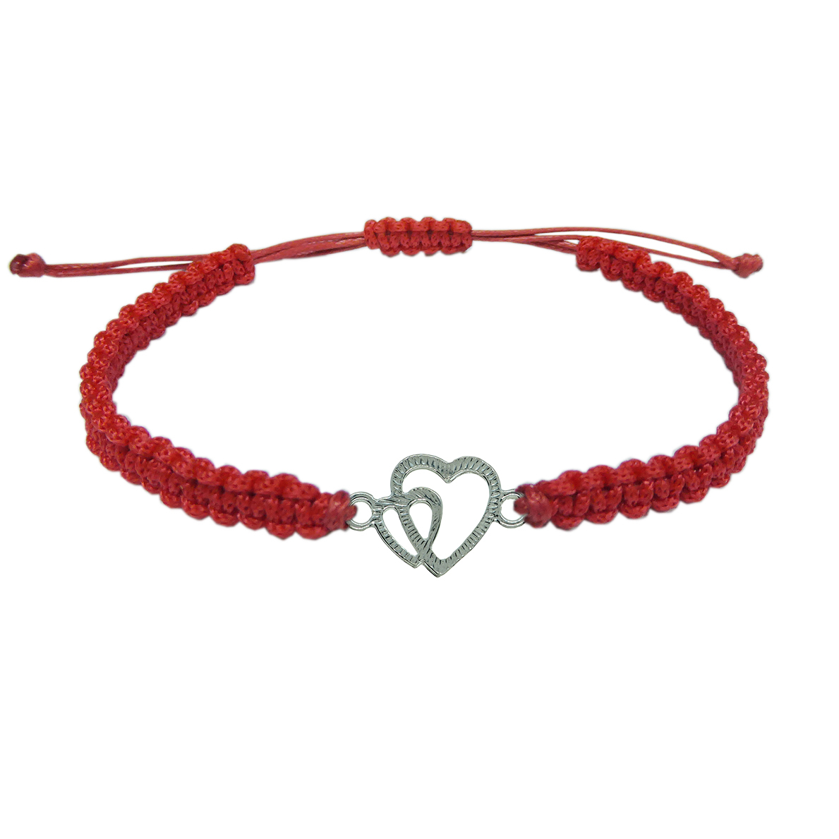 Bratara snur rosu impletit manual personalizata Doua inimioareoare argint 4392125 Dras