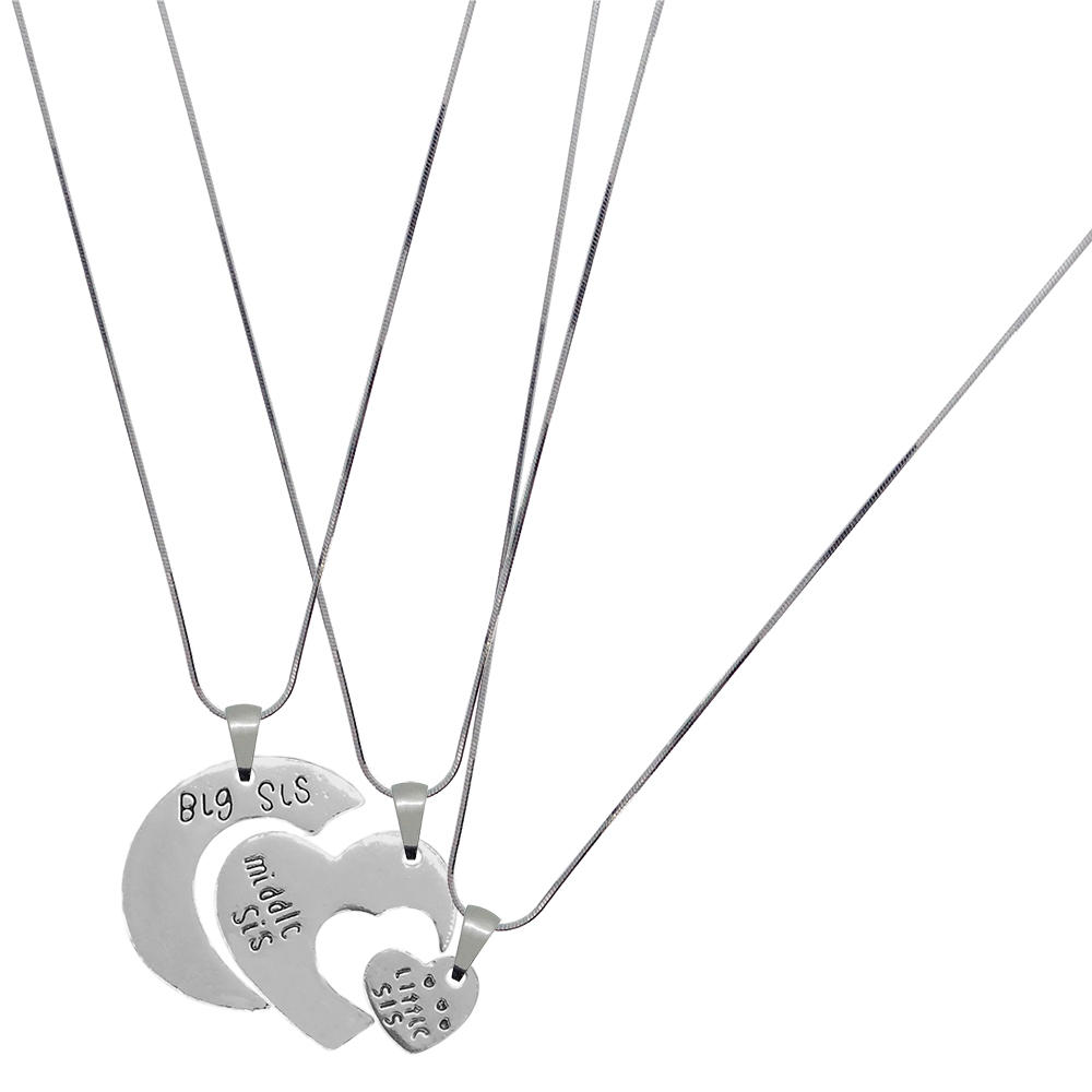Set 3 surori Lantisor argint personalizat pandantiv Inimioara little sis-middle sis-big sis 10205SCHD2590 Dras