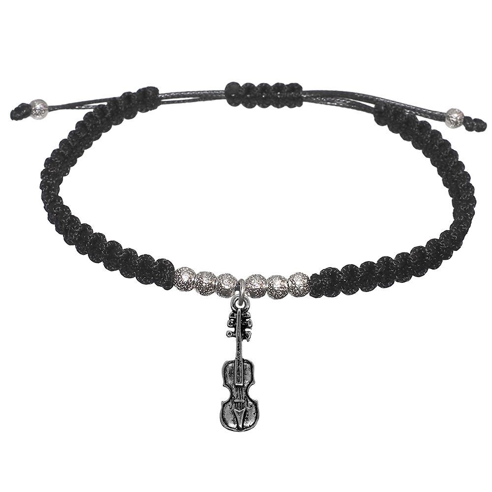 Bratara snur negru impletita manual personalizata Vioara margele argint 10128260 Dras