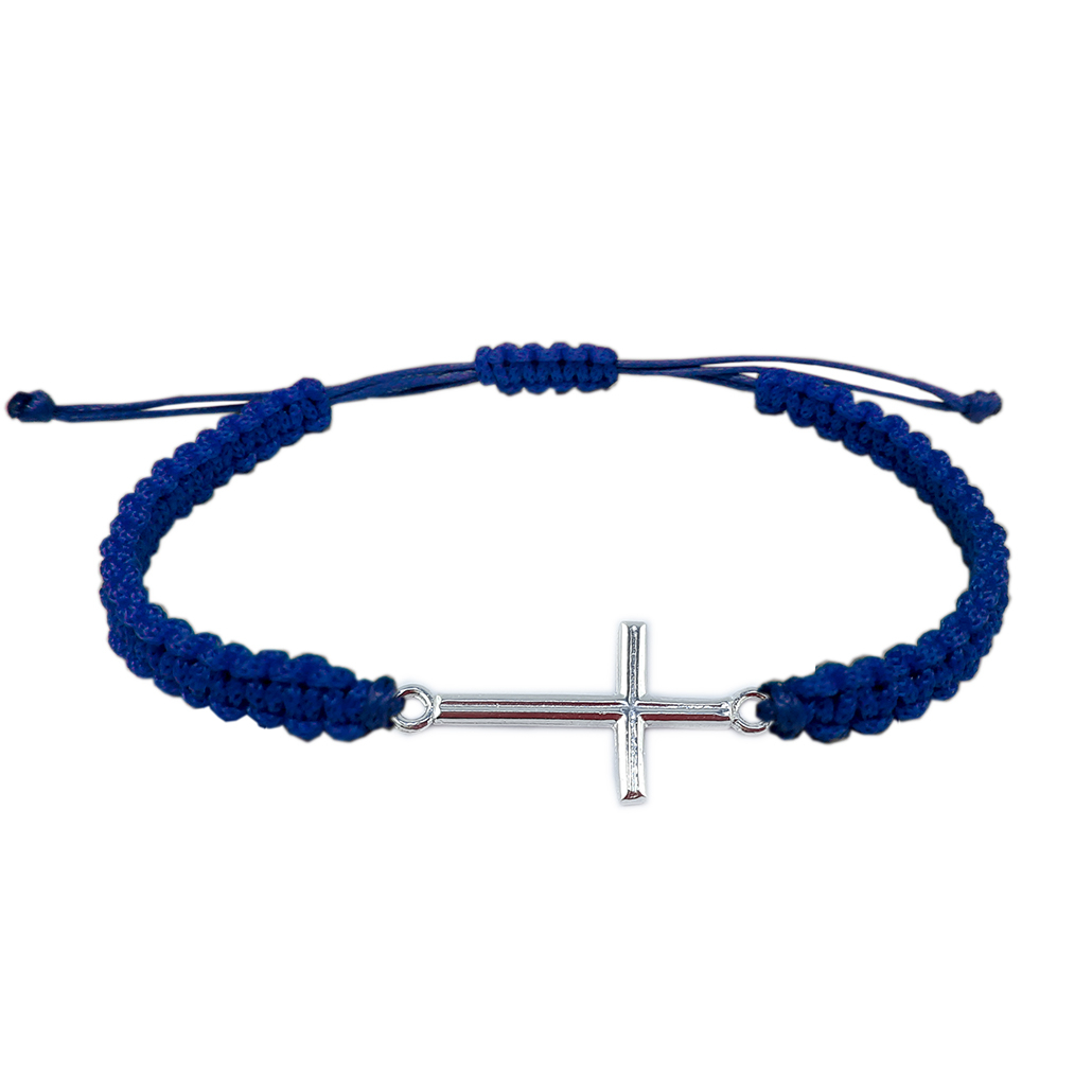Bratara snur albastru impletit manual personalizata cruciulita argint 4204150 Dras