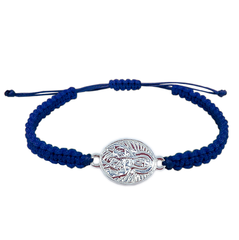 Bratara snur albastru impletit manual personalizata medalion Sfanta Cuvioasa Parascheva de la Iasi argint 4376115 Dras