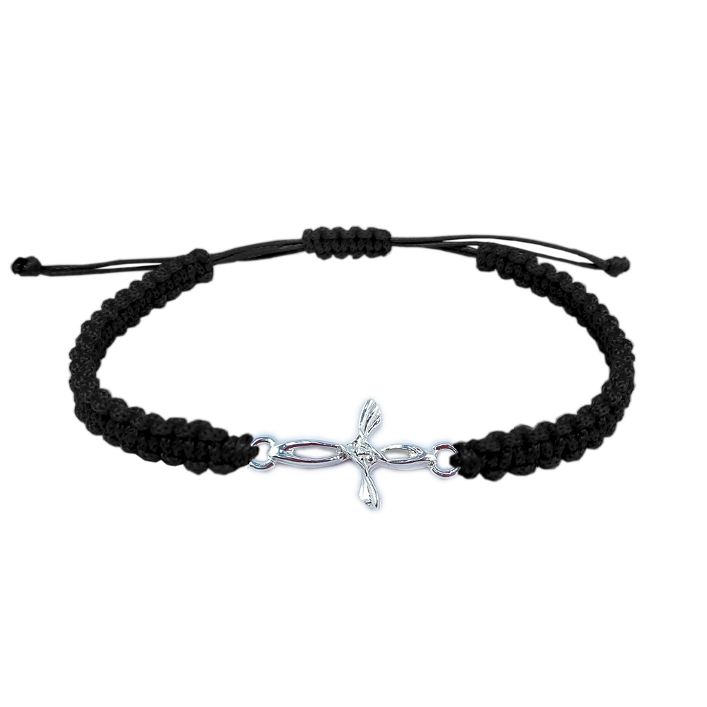 Bratara snur negru impletit manual personalizata cruciulita argint 4240100 Dras